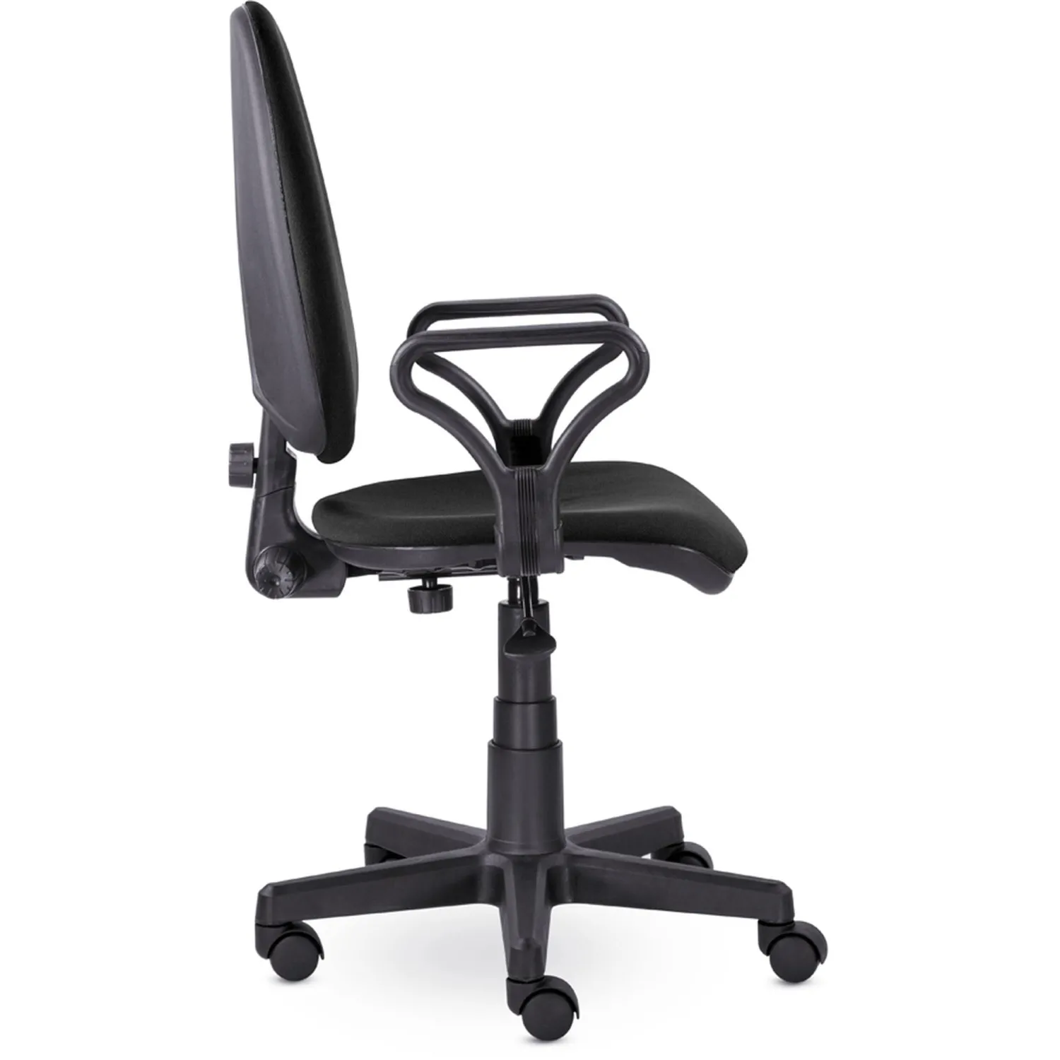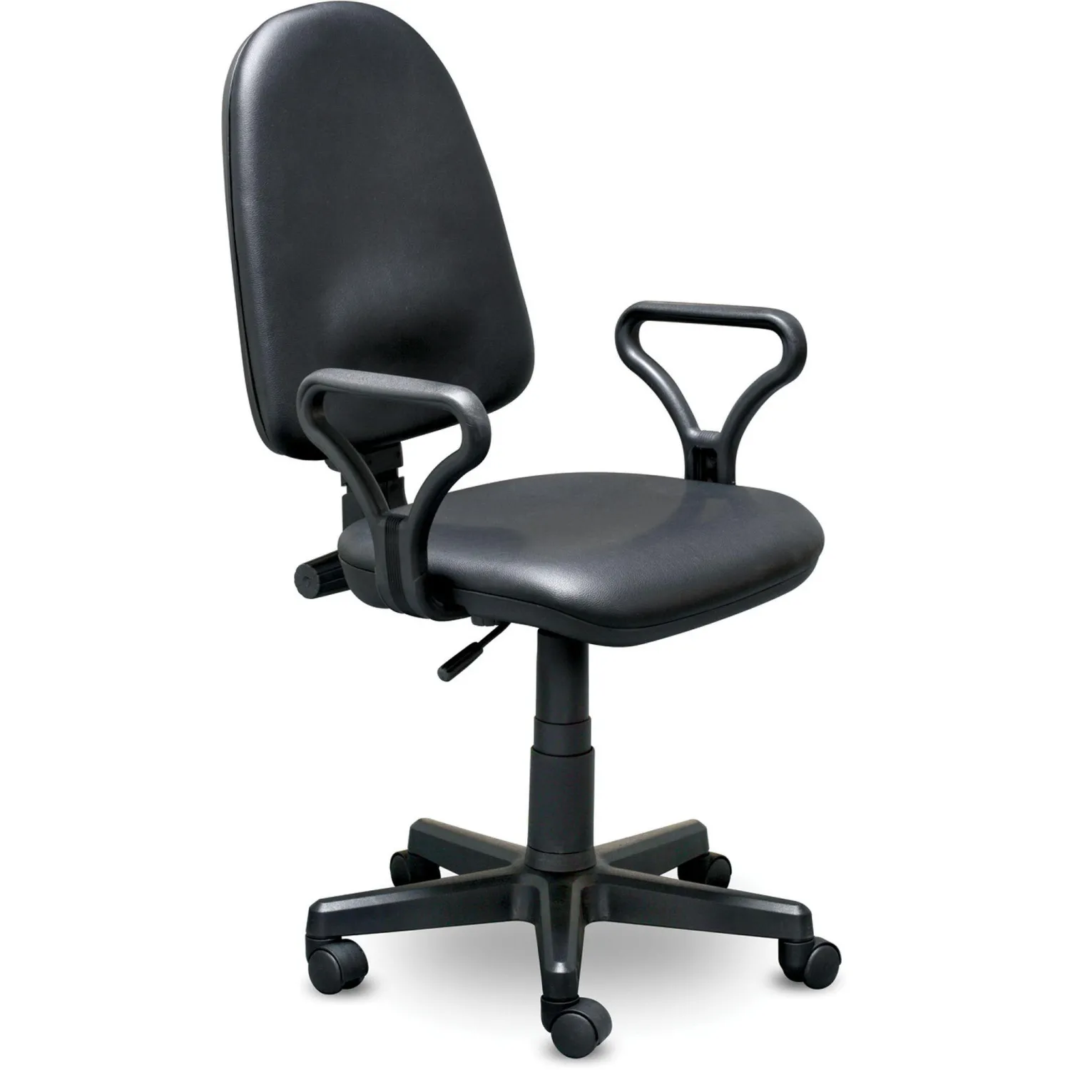 Кресло офисное Prestige. Модель, ставшая классикой офисного кресла, по-прежнему остается популярной и востребованной моделью как для домашнего, так и для офисного применения. Обивка кресла изготовлена из искусственной кожи черного цвета. Подлокотники и крестовина из пластика. Кресло оборудовано пружинным механизмом поддержки спины с возможностью регулировки сиденья по высоте. Максимальная статическая нагрузка на кресло — 100 кг.
