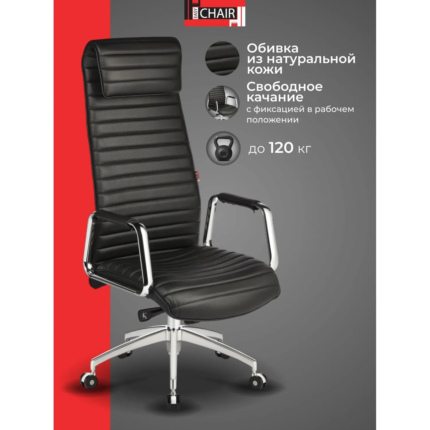 О товаре «Кресло для руководителя Easy Chair EChair-528 ML чёрное (натуральная кожа с компаньоном, алюминий)»