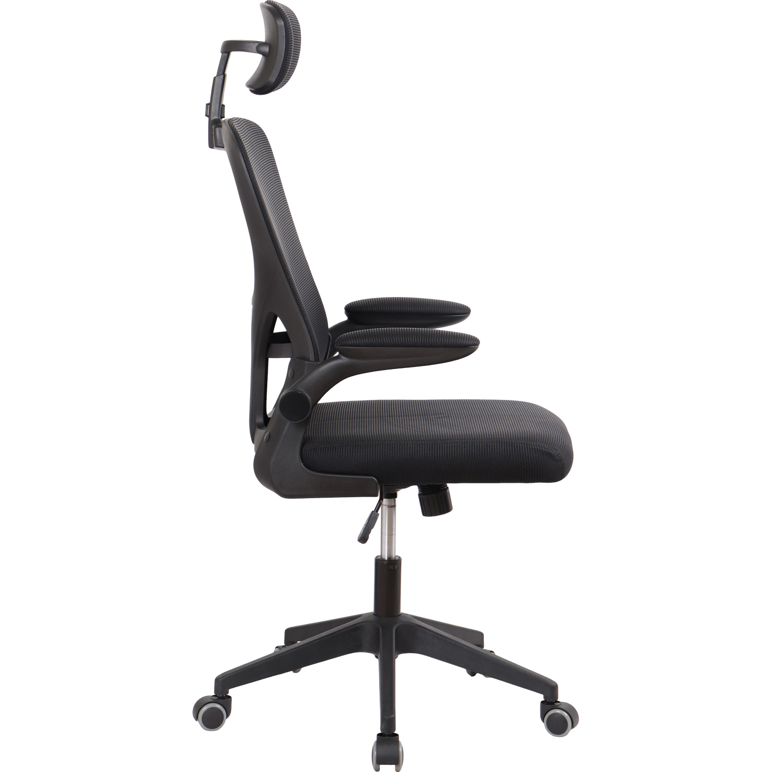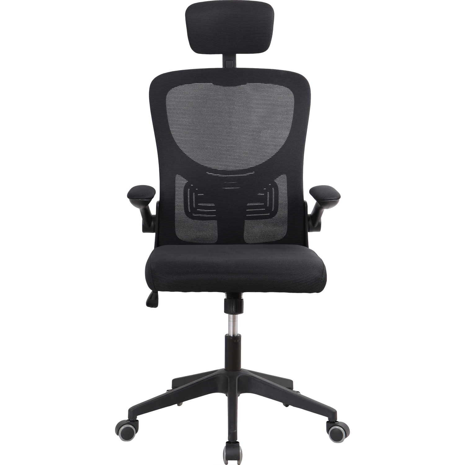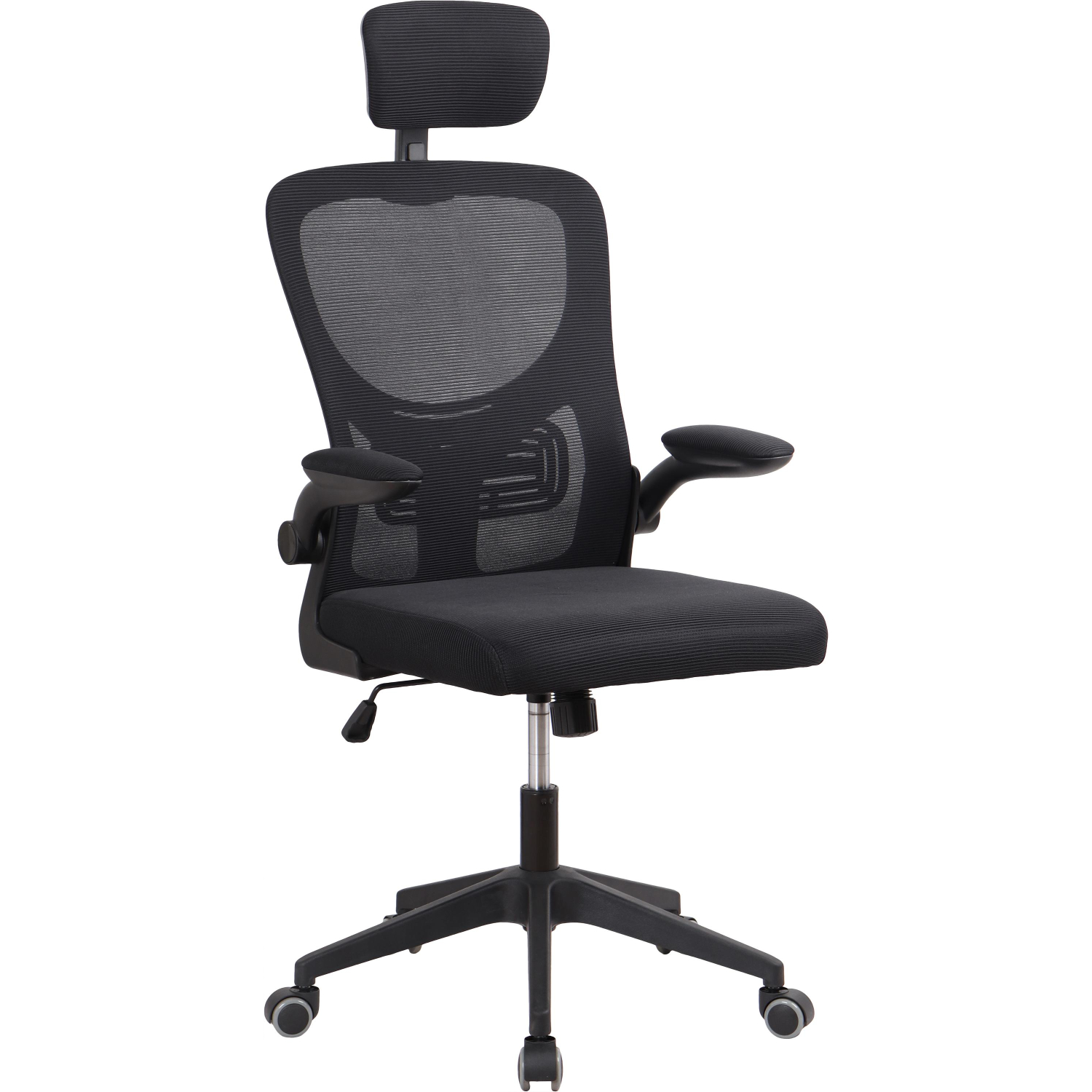 Подлокотники изготовлены из пластика с тканевой обивкой, их высота фиксирована на уровне 190 мм. Есть подголовник, однако регулируемый поясничный упор отсутствует. Основание выполнено из пластика диаметром 615 мм, установлены нейлоновые колёсики.
