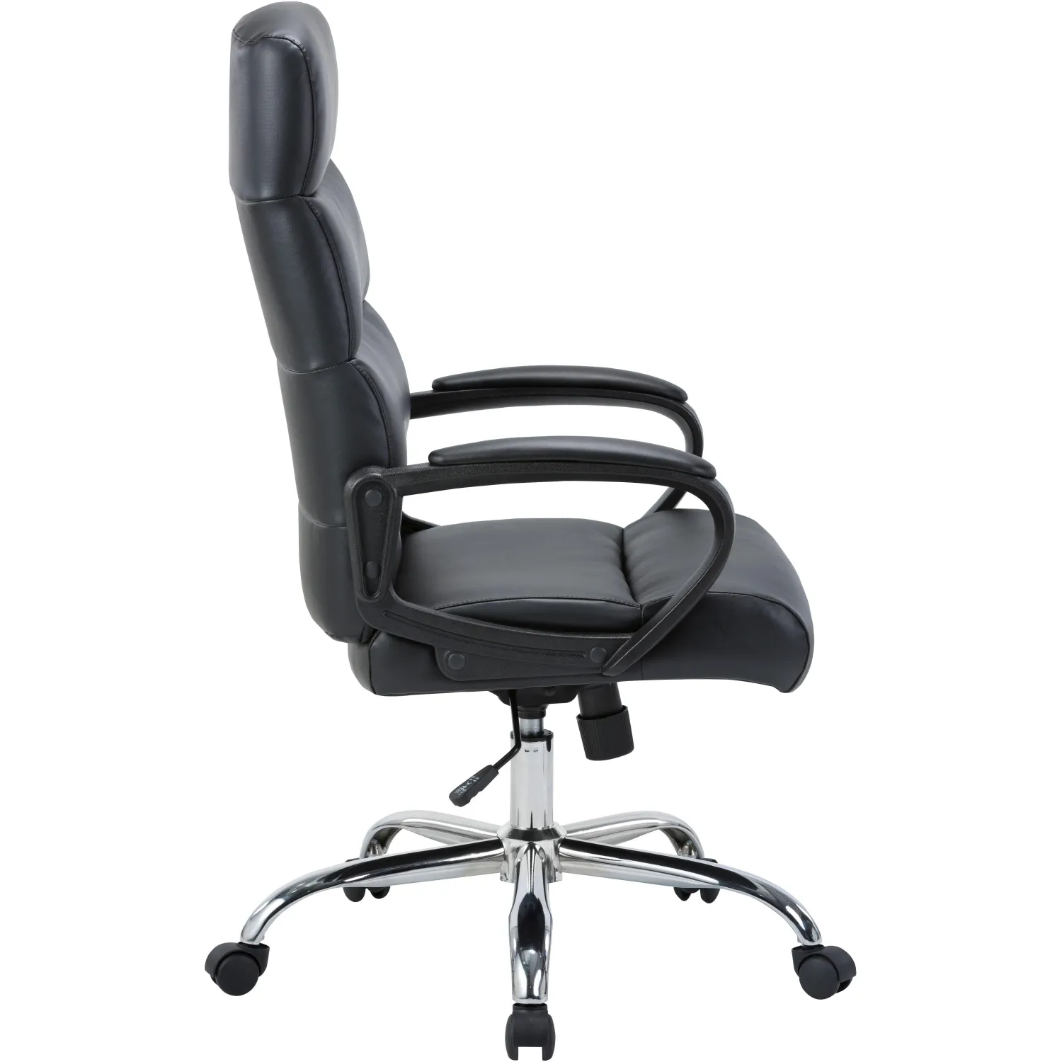 Кресло для руководителя Easy Chair 679 TR обито рециклированной кожей черного цвета. Крестовина изготовлена из хромированного металла. Подлокотники выполнены из пластика и оснащены мягкими накладками. Механизм Top Gun — свободное качание с фиксацией в вертикальном положении. Угол между спинкой и сиденьем не меняется. Кресло имеет регулировку по высоте (газлифт). Максимальная статическая нагрузка — 120 кг.