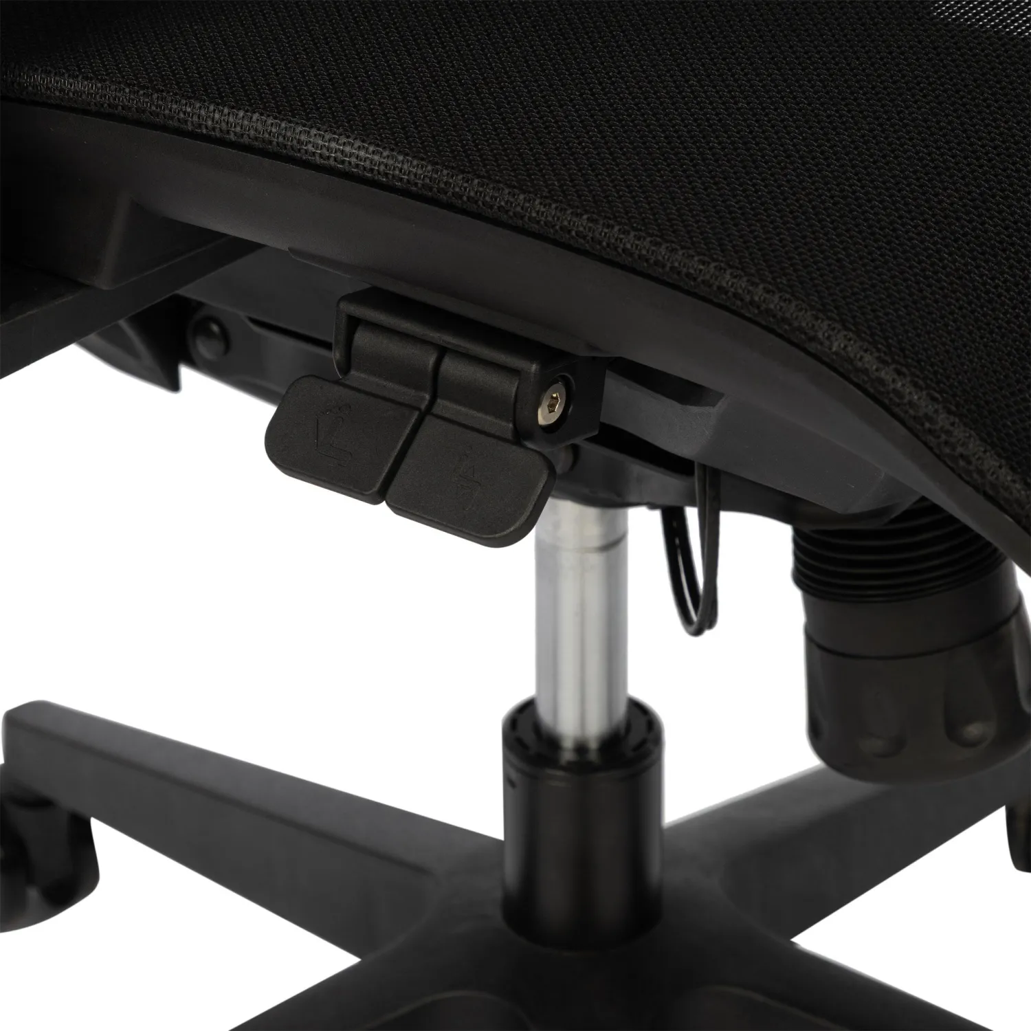 Кресло для руководителя. Спинка кресла изготовлена из сетки, свободно пропускающей воздух. Подголовник каркасный состоит из сетки, фиксируется по высоте и углу наклона. Сиденье тканевое, износостойкое. Подлокотники и крестовина изготовлены из пластика, подлокотники зафиксированы. Кресло имеет регулировку по высоте (газлифт). Максимальная статическая нагрузка на кресло — 120 кг.