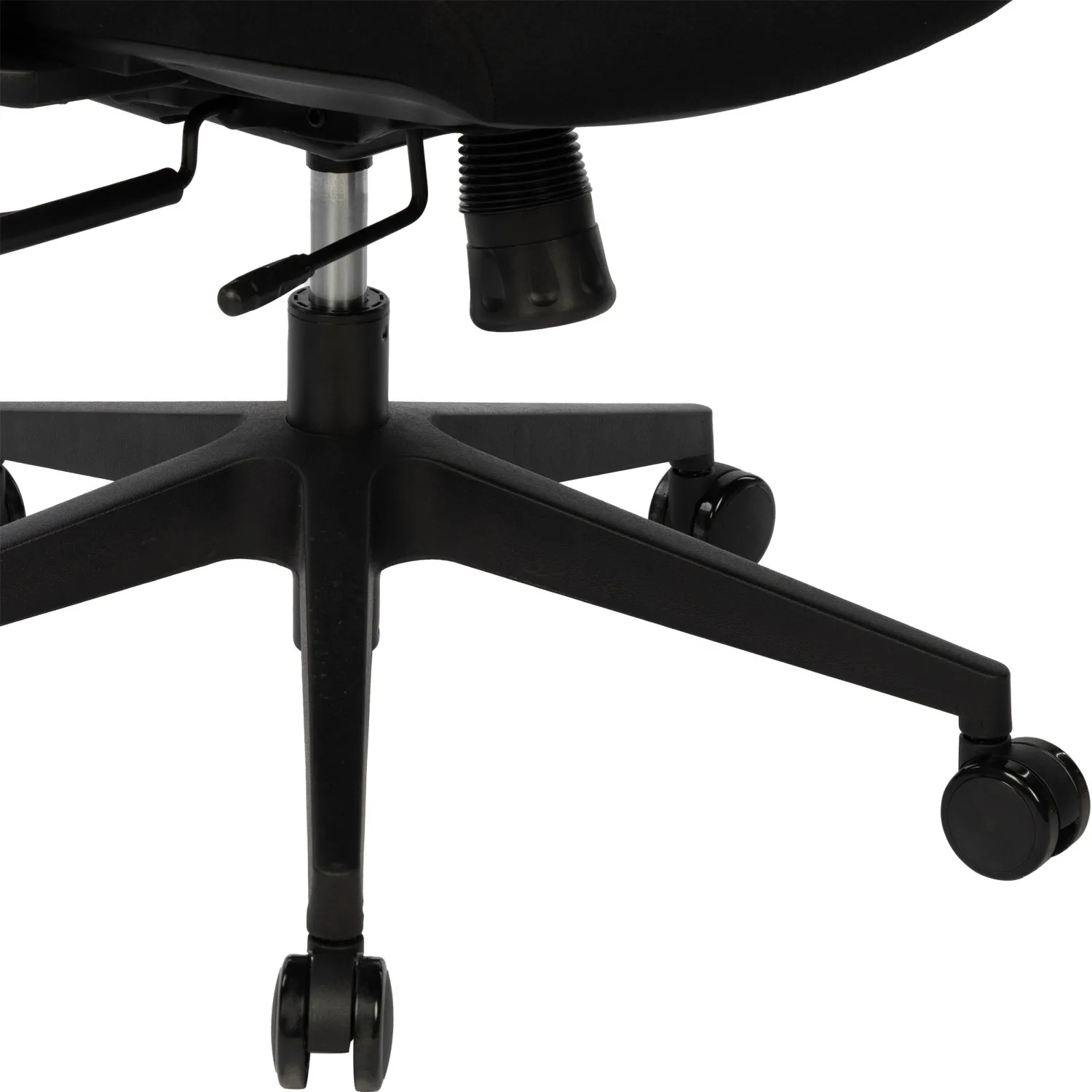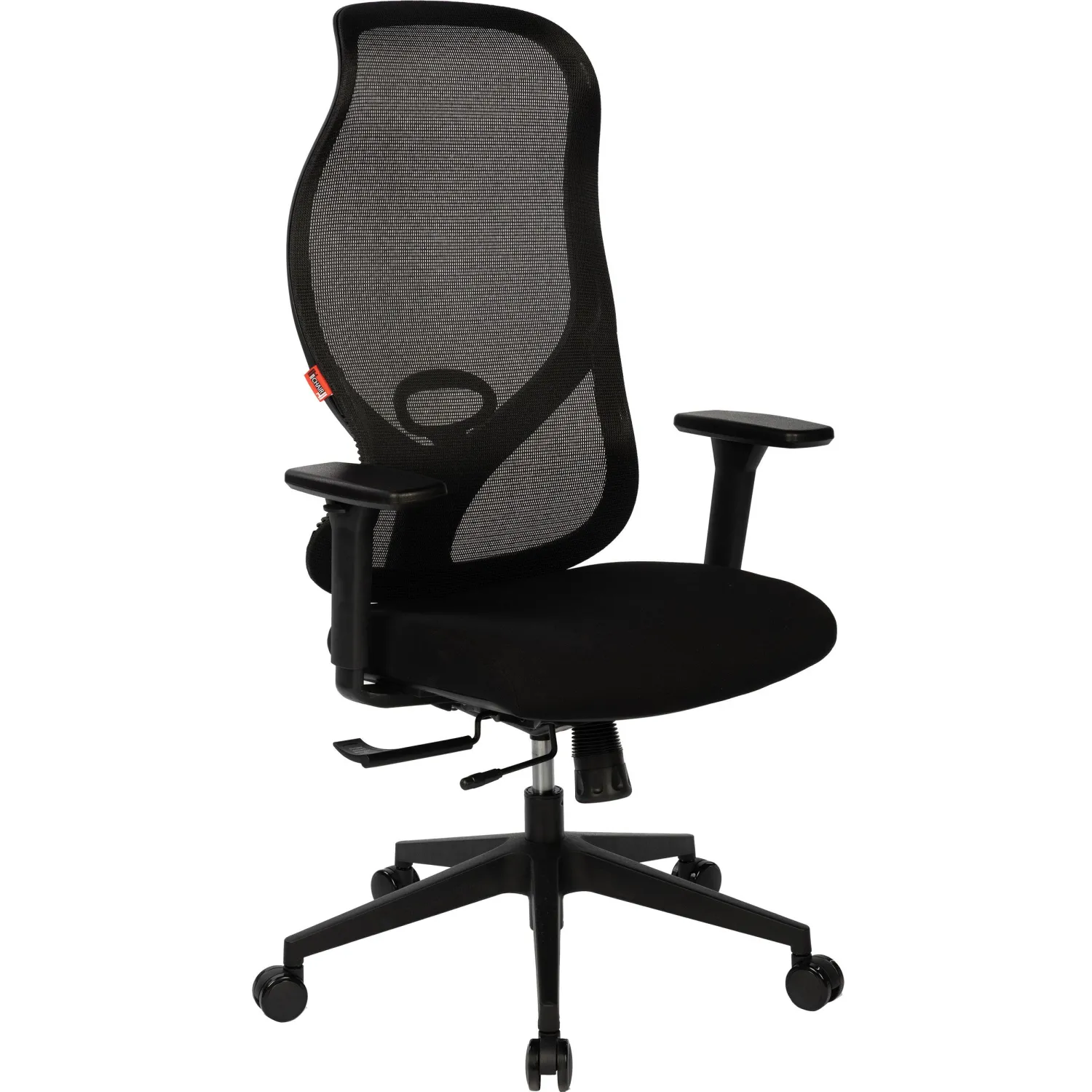 Кресло для руководителя. Спинка кресла изготовлена из сетки, свободно пропускающей воздух. Сиденье тканевое, износостойкое. Подлокотники и крестовина изготовлены из пластика. Кресло имеет регулировку по высоте (газлифт). Максимальная статическая нагрузка на кресло — 120 кг.