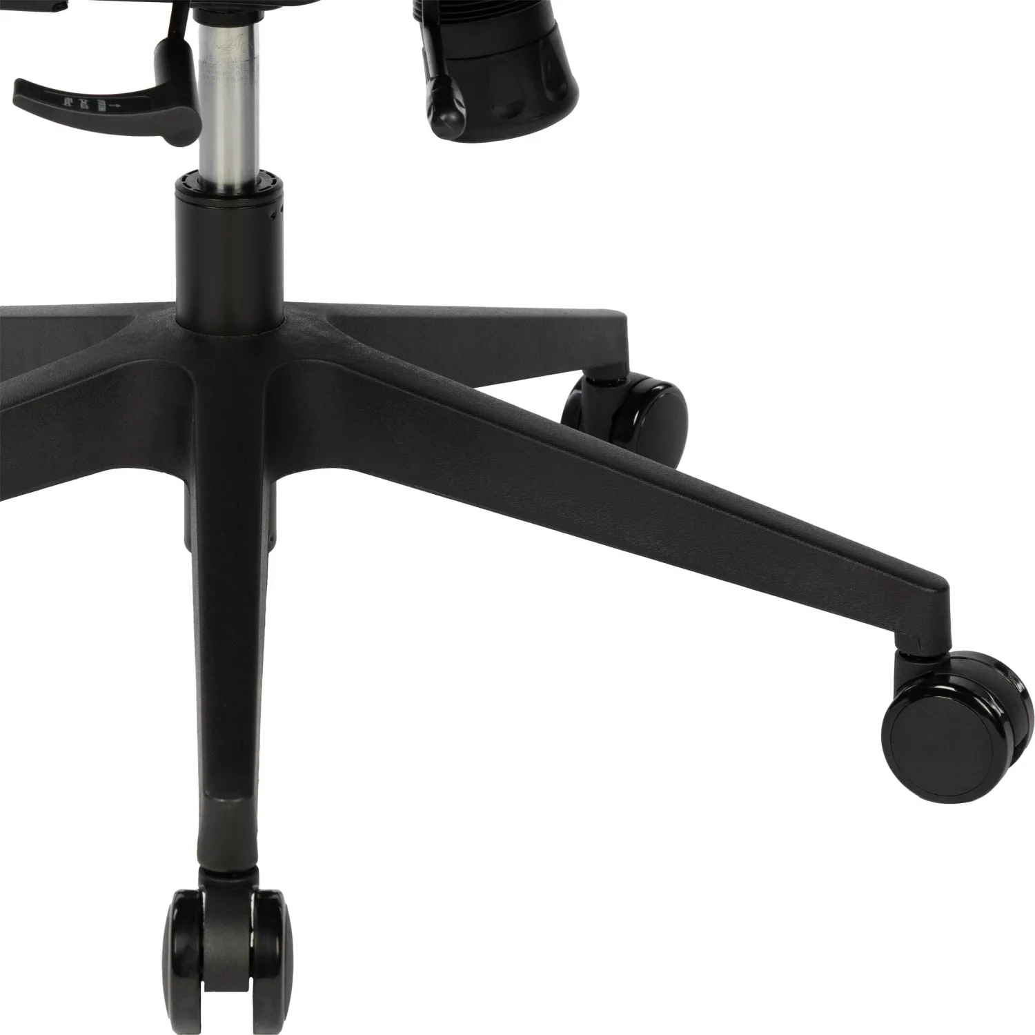 Кресло для руководителя. Спинка кресла изготовлена из сетки, свободно пропускающей воздух. Сиденье тканевое, износостойкое. Подлокотники и крестовина изготовлены из пластика. Кресло имеет регулировку по высоте (газлифт). Максимальная статическая нагрузка на кресло — 120 кг.