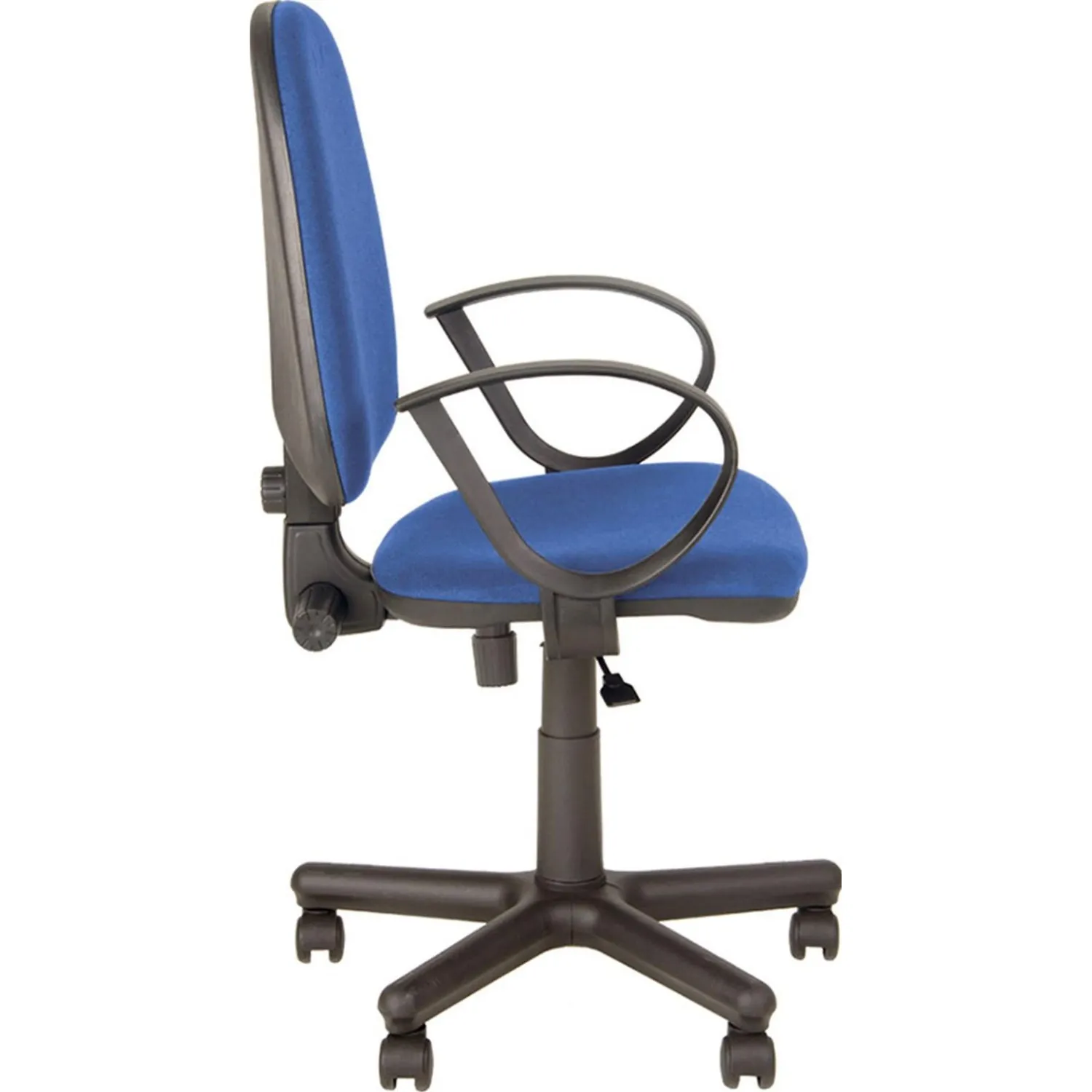 Кресло офисное Jupiter имеет обивку из прочной ткани С синего цвета. Подлокотники выполнены из черного пластика. Крестовина металлическая с черными пластиковыми накладками. Сиденье и спинка эргономичные, профилированные. Кресло офисное Jupiter снабжено пружинным механизмом поддержки спины с возможностью регулировки силы отклонения. Это позволяет спинке кресла находиться в постоянном контакте со спиной сидящего, обеспечивая надежную поддержку позвоночника. С помощью газлифта возможна регулировка кресла по высоте. Максимальная статическая нагрузка на кресло — 120 кг.