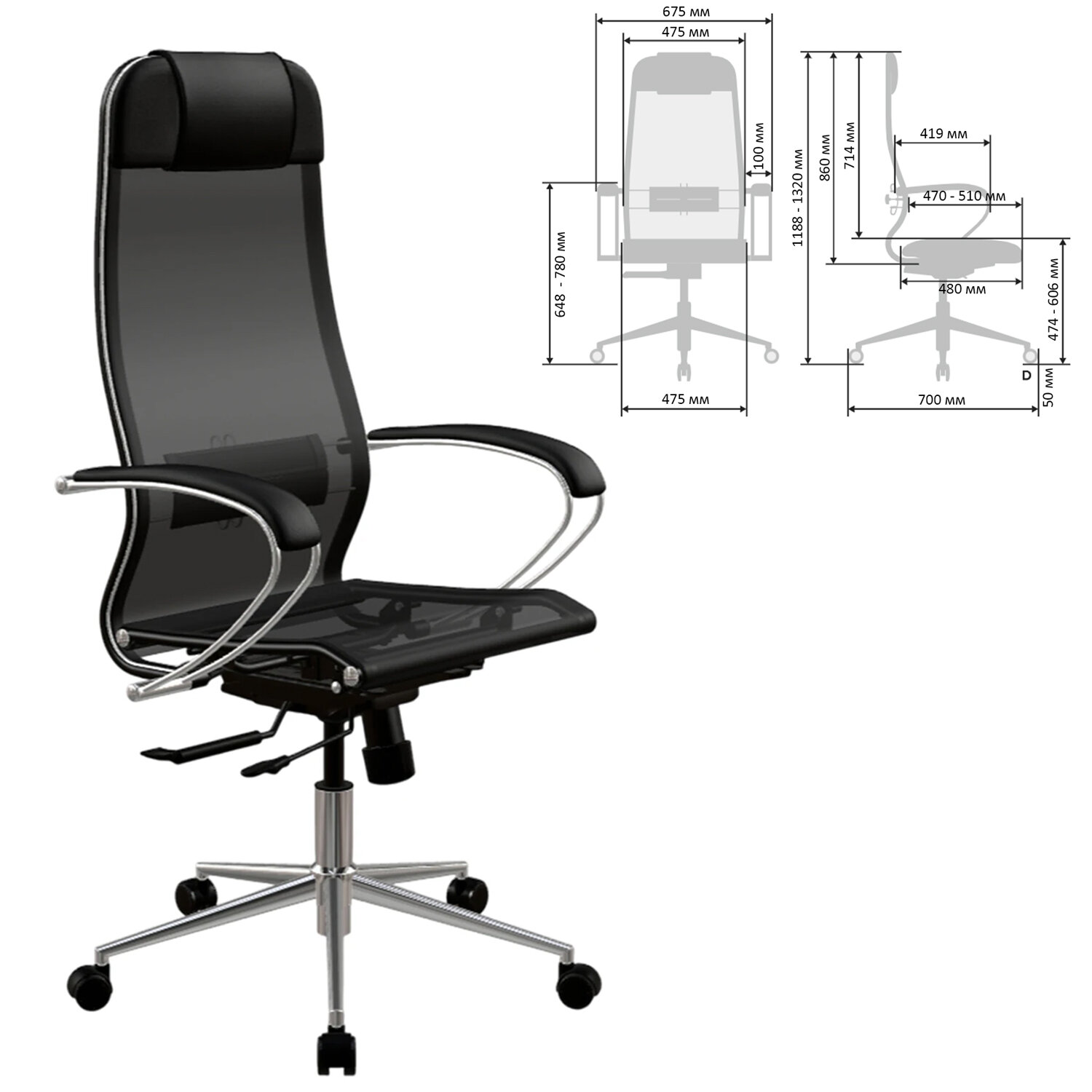 Кресло МЕТТА "ErgoLife" 10 B1-104K, хром, синхромеханизм, прочная сетка, черное