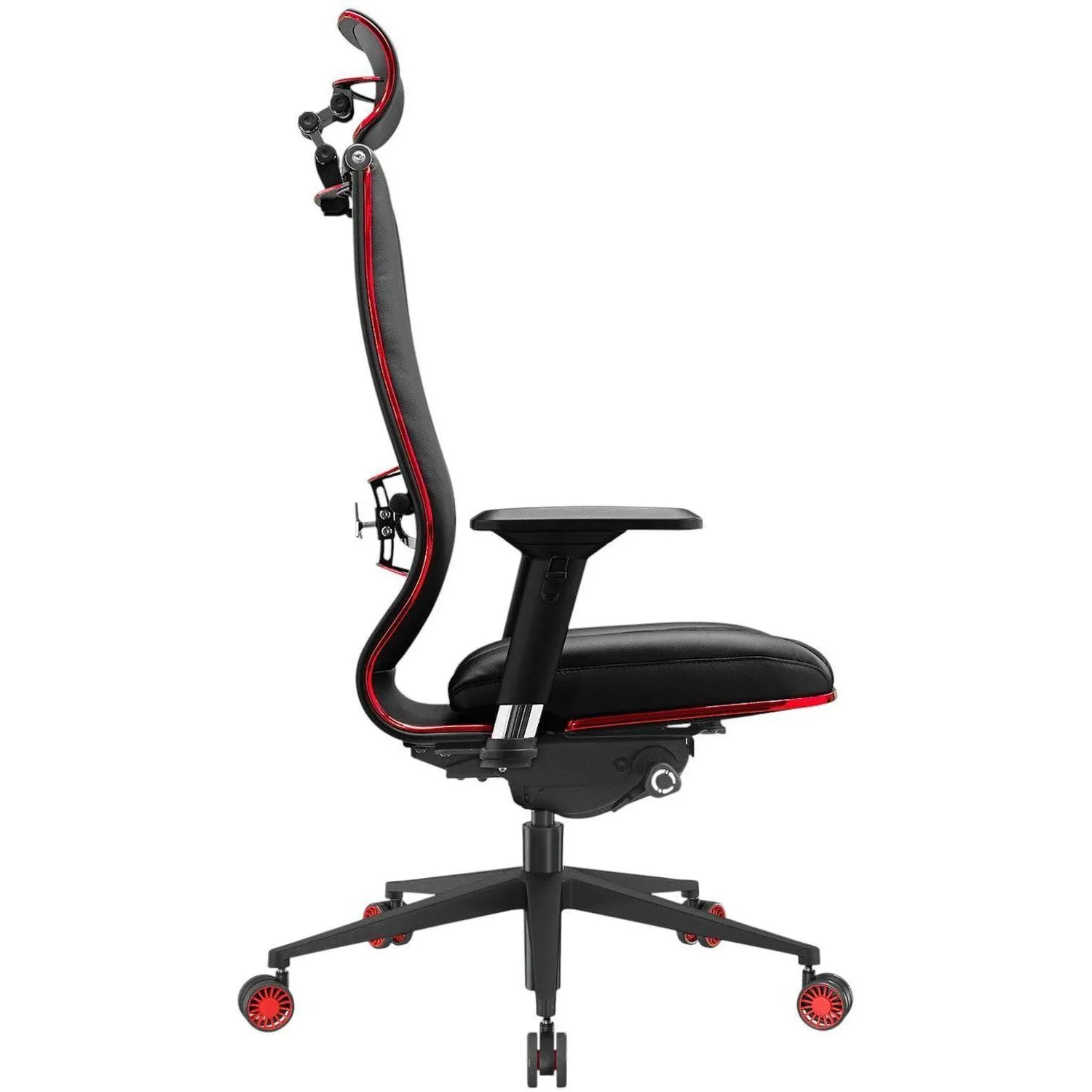 Кресло для руководителя Samurai Space Red подходит для дома и офиса. Материал обивки — обивочная сетчатая ткань и экокожа. Крестовина — пластик. Кресло оборудовано механизмом качания Synchro — спинка и сиденье отклоняются в соотношении 2:1, угол наклона спинки относительно сиденья изменяется синхронно. Максимальная статическая нагрузка на кресло — 120 кг. Требуется сборка.