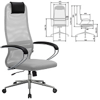 Кресло офисное МЕТТА "SU-B-8" хром, ткань-сетка, сиденье мягкое, светло-серое