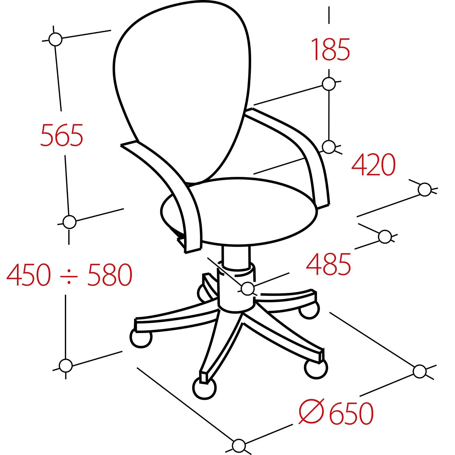 Кресло офисное. Материал обивки — сетка/ткань. Регулировка высоты (газлифт). Пружинно-винтовой механизм качания спинки. Ограничение по весу — 120 кг. Металлическая разборная крестовина. Пластиковые подлокотники. Пластиковые колеса.