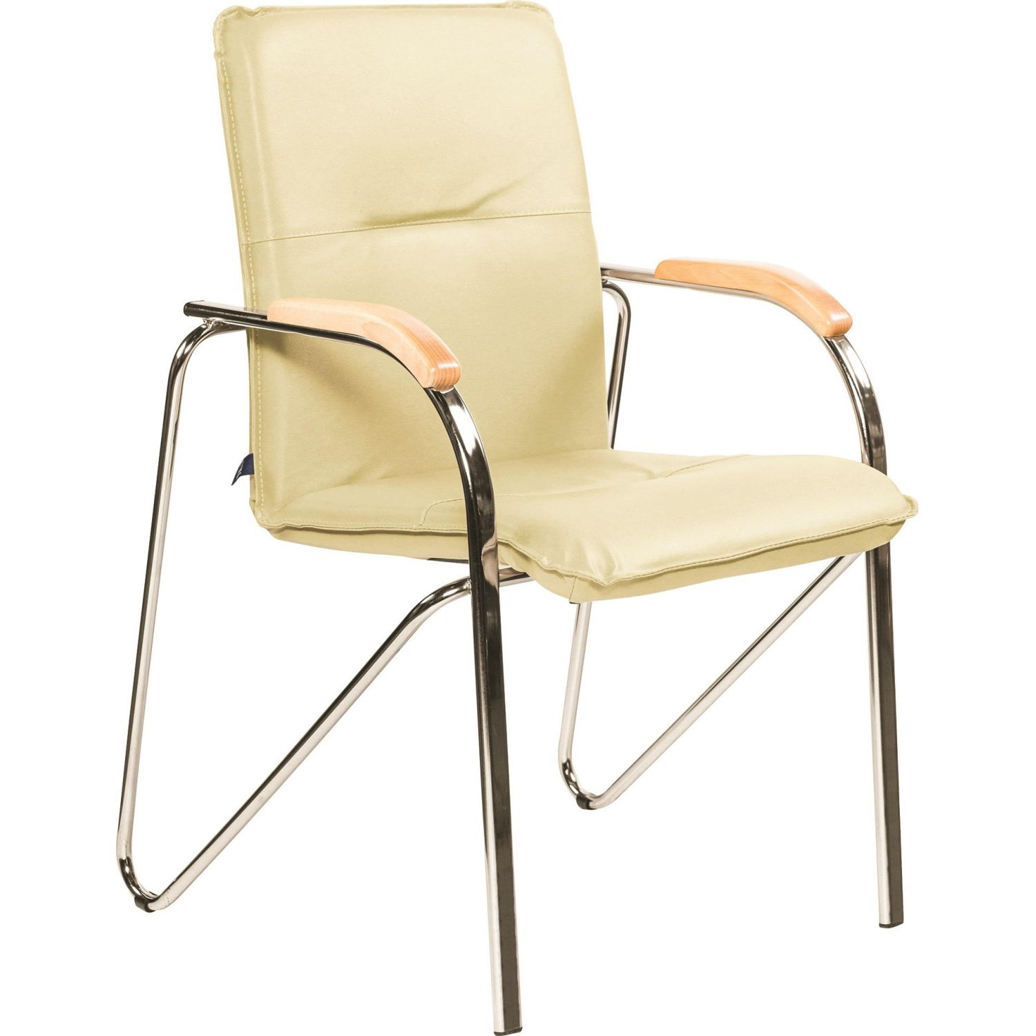 Конференц-кресло Samba Chrome светло-бежевый/бук (экокожа, металл хромированный)
