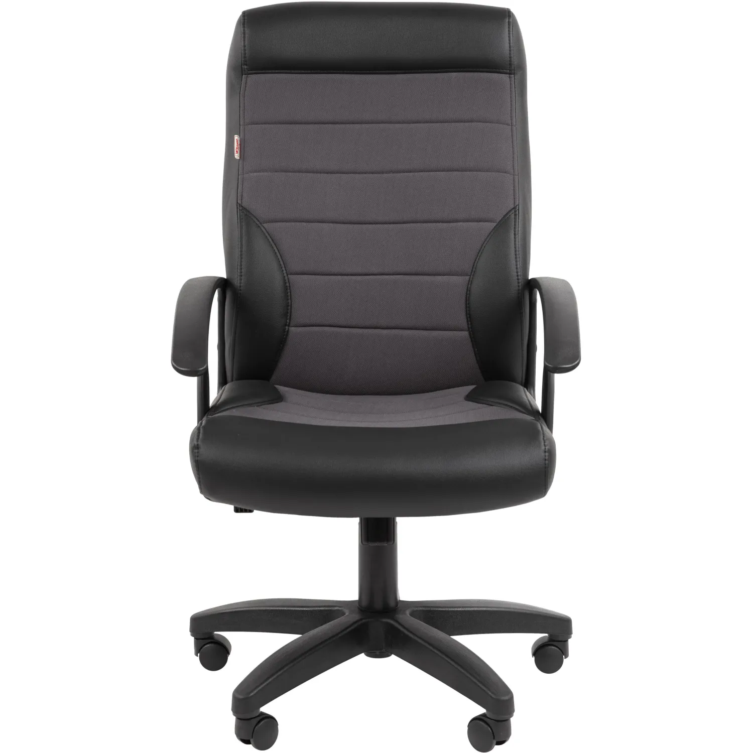 Кресло для руководителя Комус Мебель 639 TPU имеет комбинированную обивку из черной экокожи (бока сиденья и спинки) и вставок из серой ткани Т по центру сиденья и спинки. Подлокотники и крестовина выполнены из пластика черного цвета. Механизм качания Top Gun — свободное качание с фиксацией в вертикальном положении. Угол между спинкой и сиденьем не меняется. Кресло имеет регулировку по высоте (газлифт). Рекомендуемая максимальная нагрузка — до 120 кг.