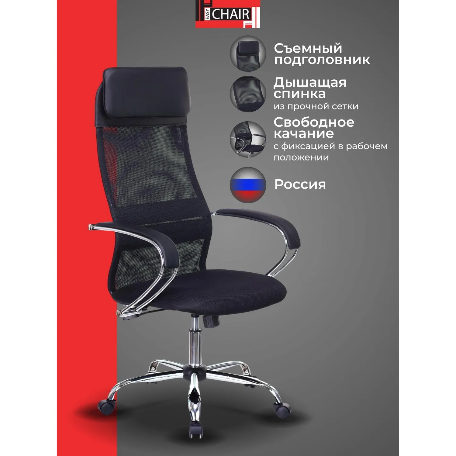 О товаре «Кресло для руководителя Easy Chair 655/SL/BL чёрное (искусственная кожа/сетка/ткань, металл)»