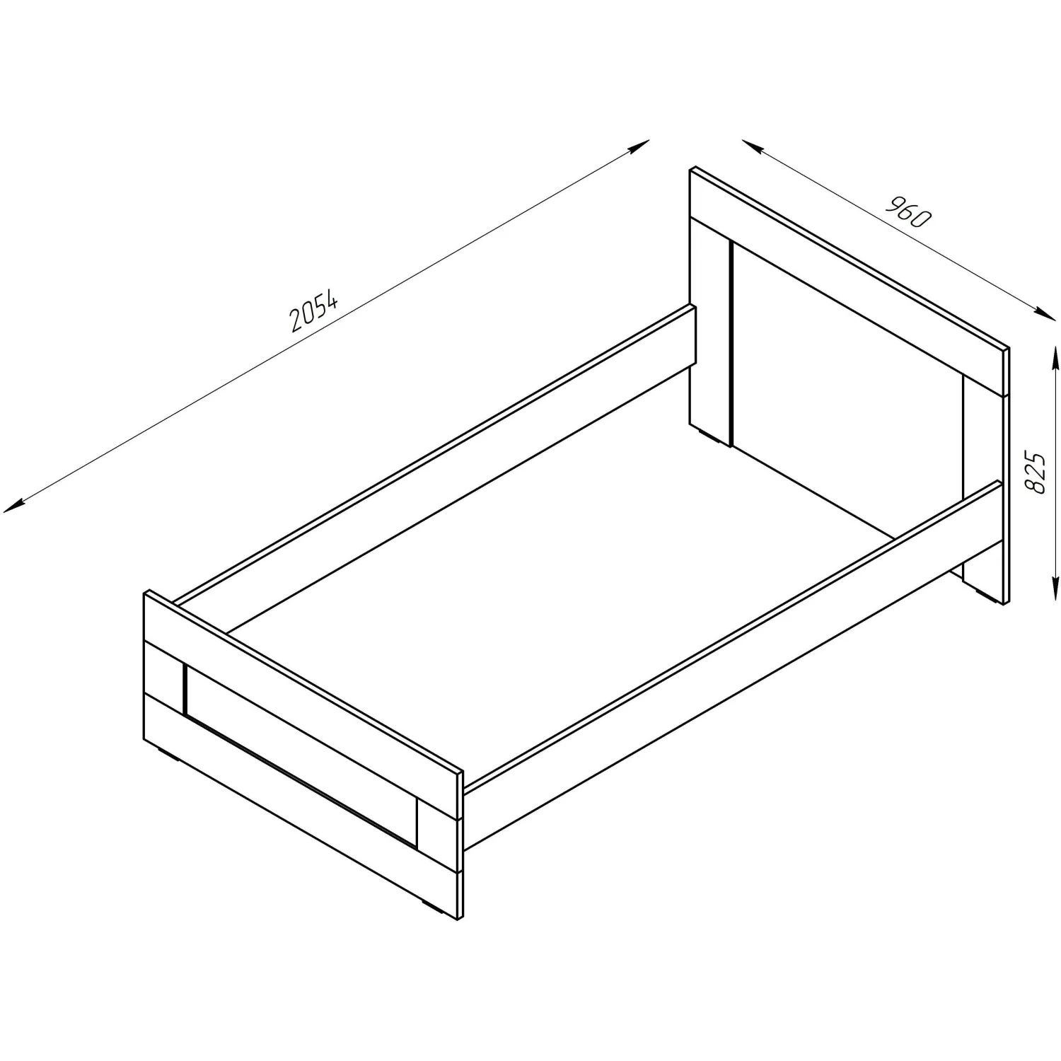 Кровать Сириус одноместная с ортопедическим основанием, цвет Дуб сонома. Спальное место 900×2000 мм. Размер (ШхГхВ) 960×2054×825 мм.