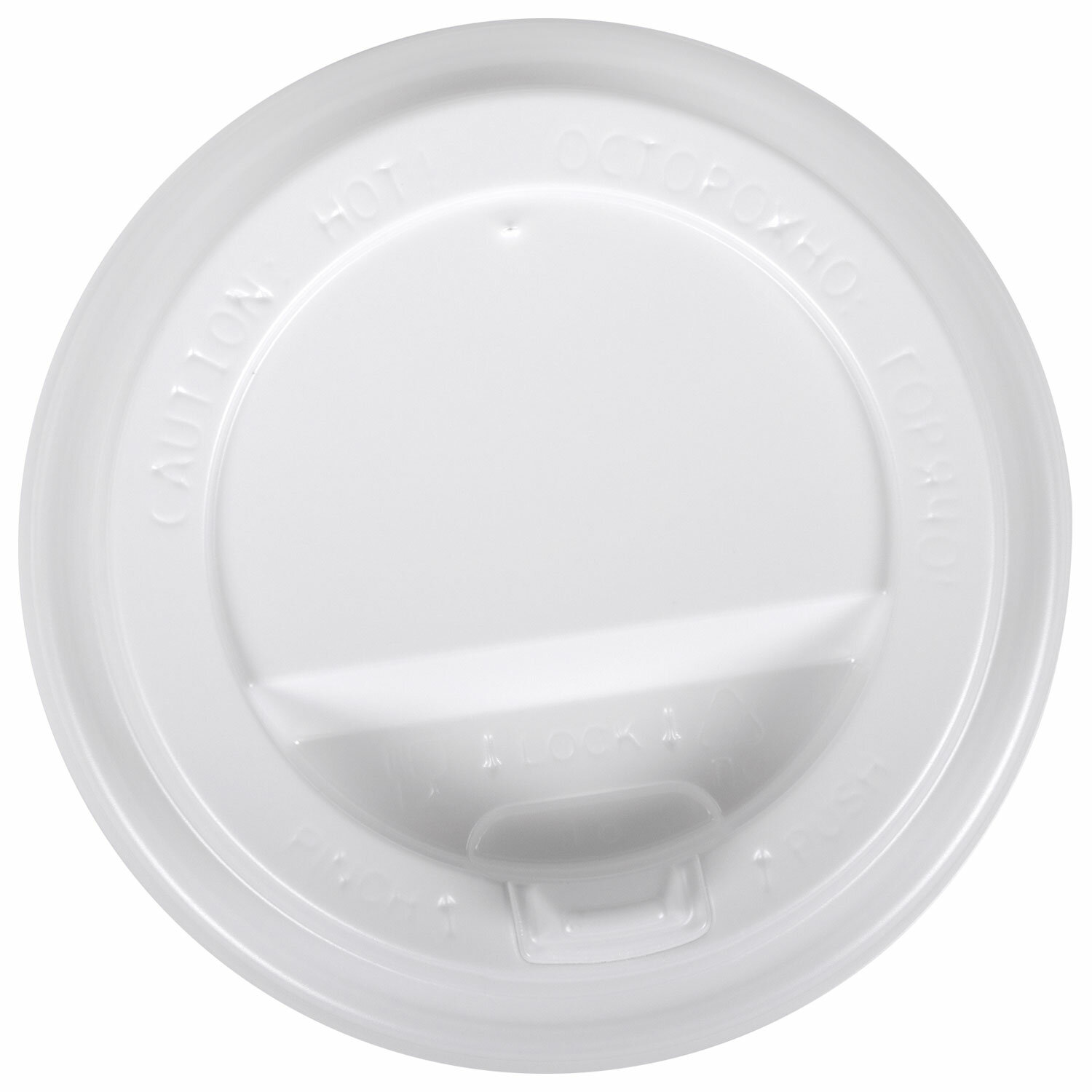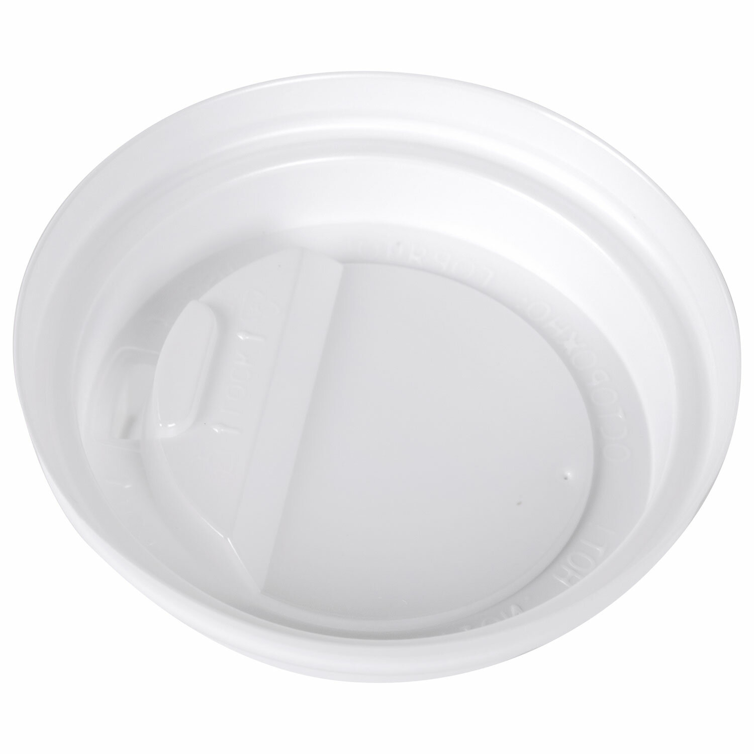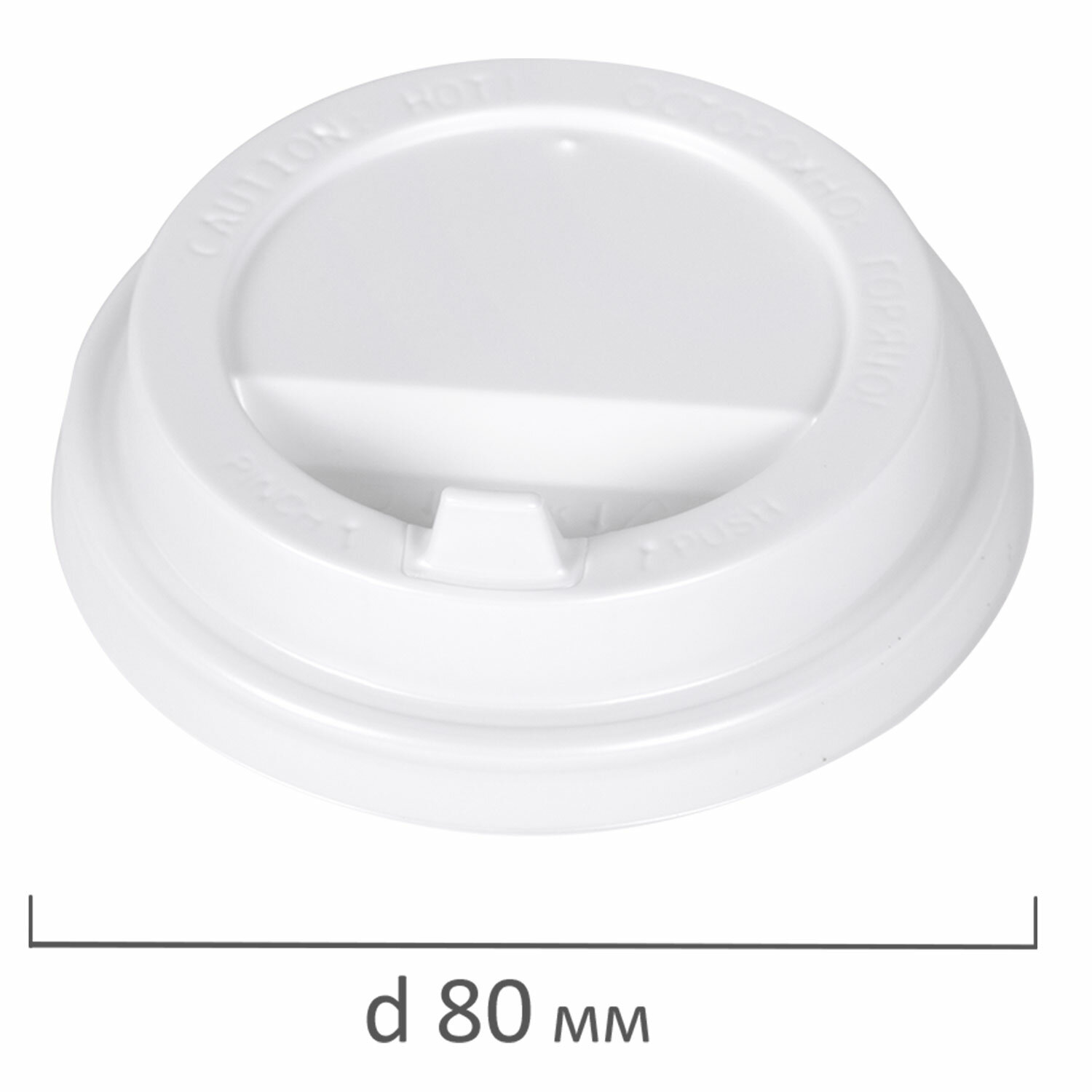 Крышка пластиковая с носиком для бумажных стаканов, цвет белый, диаметр 80 мм, 1000 штук в упаковке.