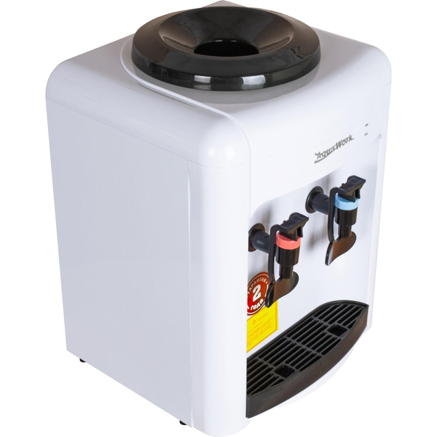 Удобный настольный кулер Aqua Work 0.7 TKR с функцией нагрева отличается сдержанным дизайном. Он выполнен из качественного белого пластика, бак для горячей воды изготовлен из нержавеющей стали. Температура нагревания воды — 93 °C, производительность нагрева — 5 л/ч. Предусмотрено два краника с механизмом «нажим кружкой».