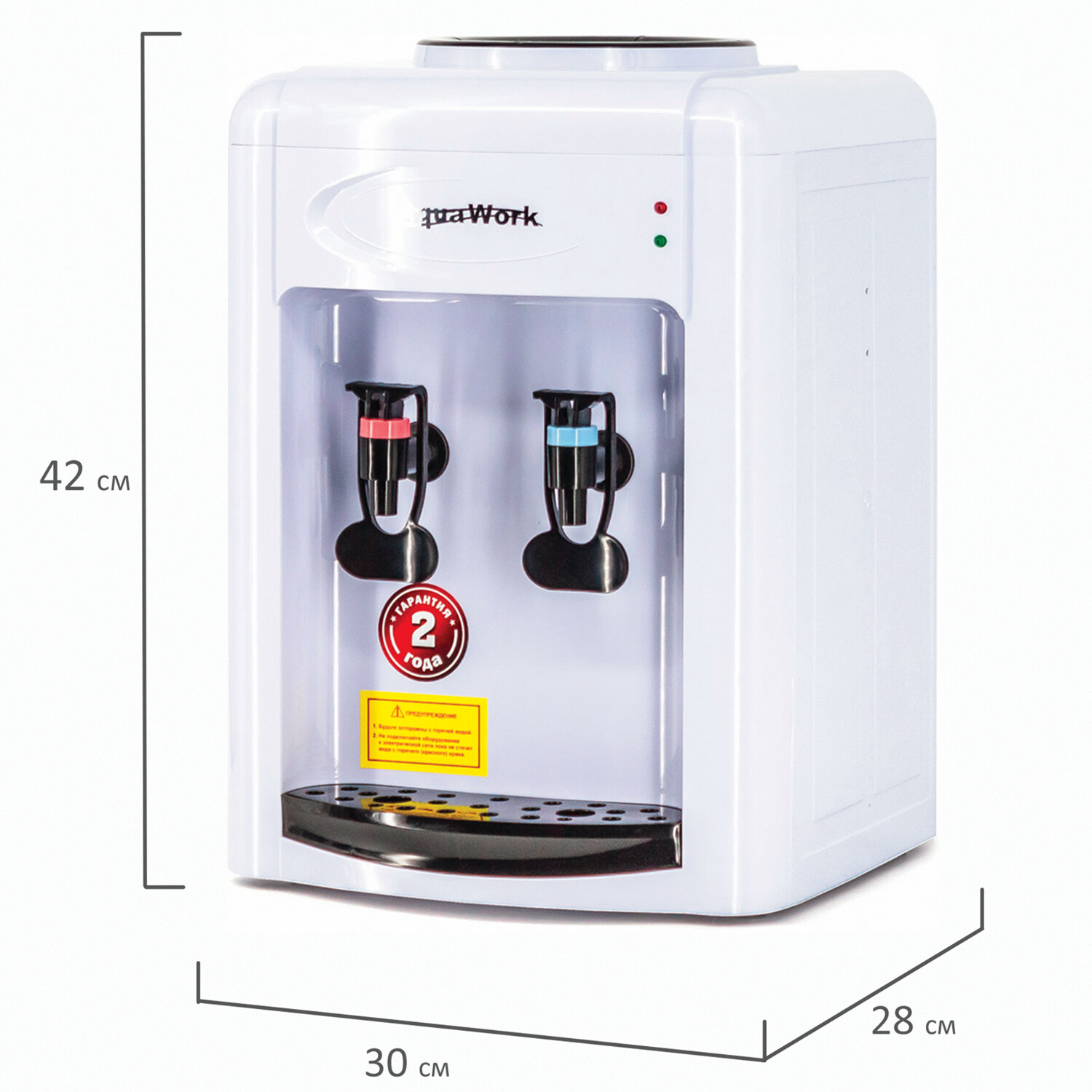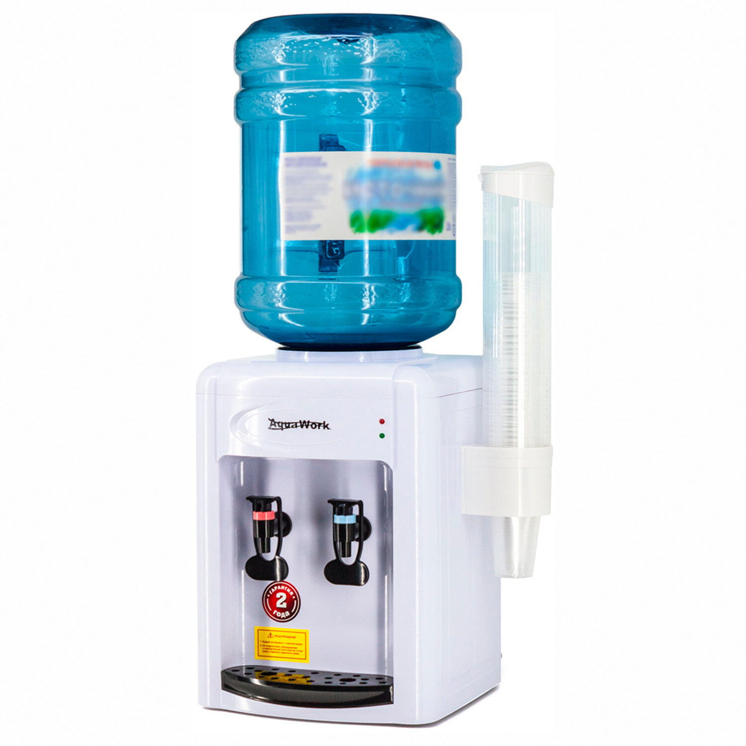 Удобный настольный кулер Aqua Work 0.7 TKR с функцией нагрева отличается сдержанным дизайном. Он выполнен из качественного белого пластика, бак для горячей воды изготовлен из нержавеющей стали. Температура нагревания воды — 93 °C, производительность нагрева — 5 л/ч. Предусмотрено два краника с механизмом «нажим кружкой».