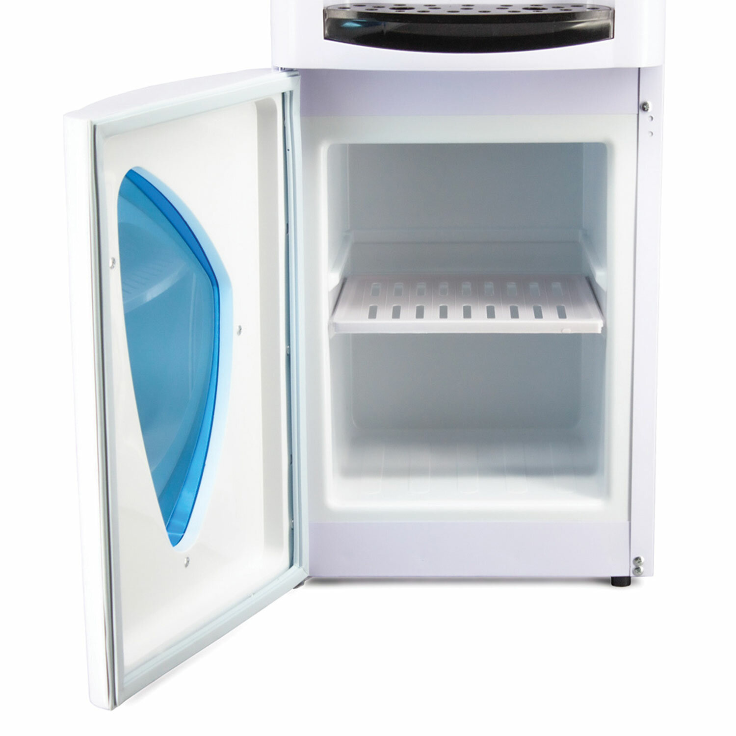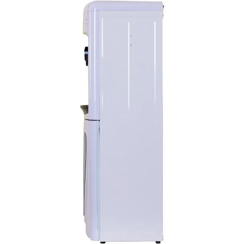 Кулер рассчитан на 20 пользователей, что делает его отличным выбором для средних коллективов. Встроенный шкафчик объемом 10 литров позволяет удобно хранить пластиковые стаканчики или другие принадлежности, а крепление стаканодержателя винтами или магнитом добавляет надежности и удобства. Элегантный белый корпус из пластика и стали не только выглядит стильно, но и обеспечивает долговечность.