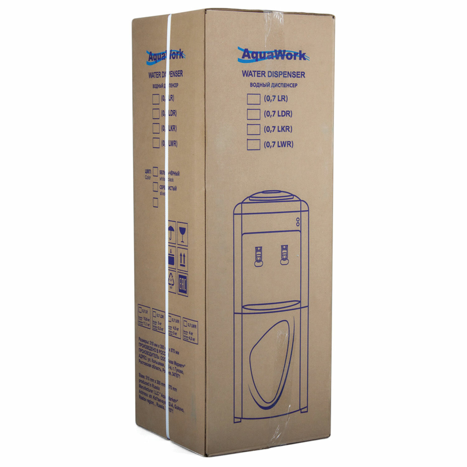 Компактные габариты (855x300x290 мм) и вес 4,7 кг позволяют легко разместить кулер в любом помещении. Простота конструкции и отсутствие необходимости подключения к электросети делают AQUA WORK 0.7-LWR экономичным и универсальным решением.