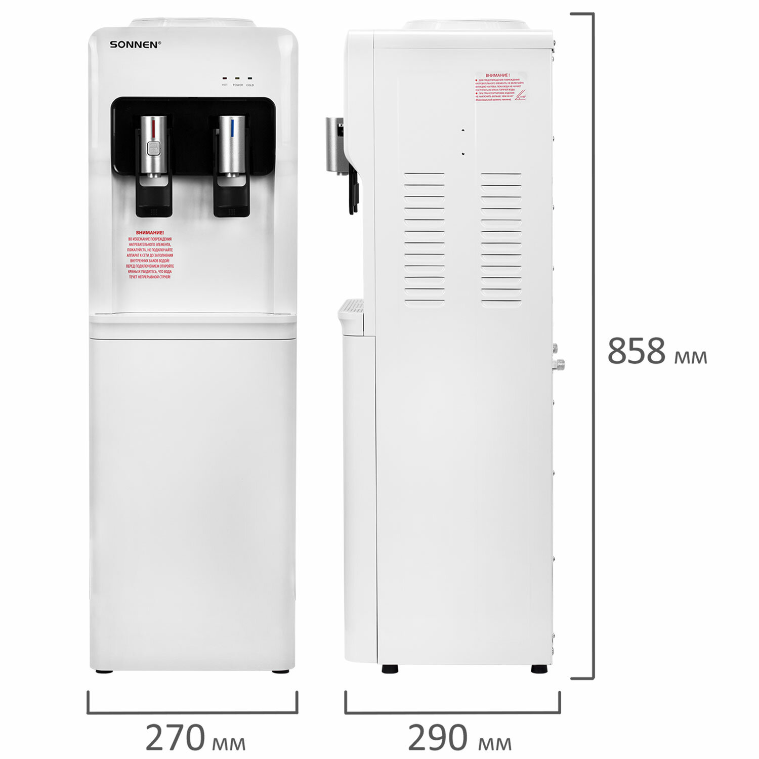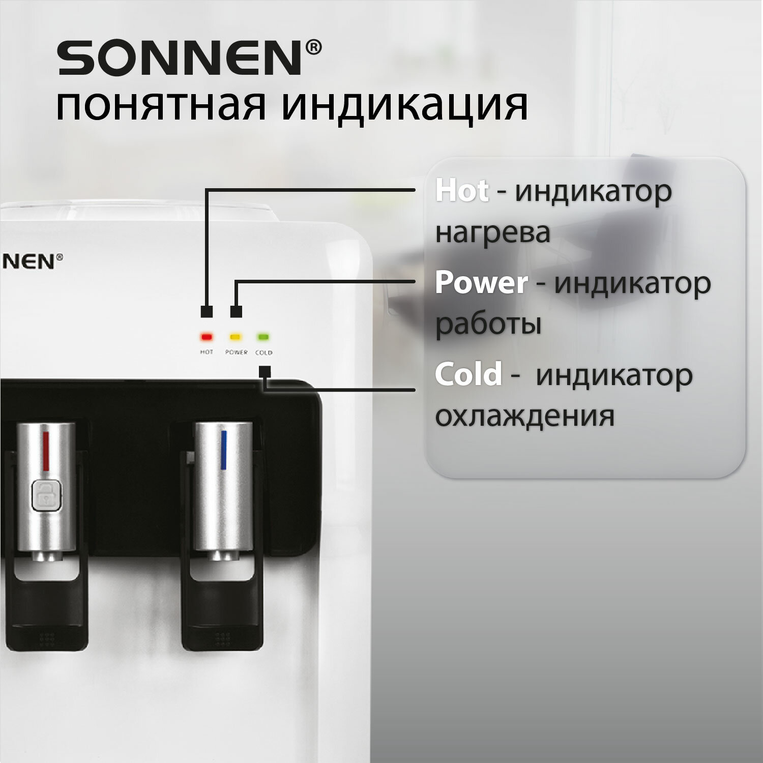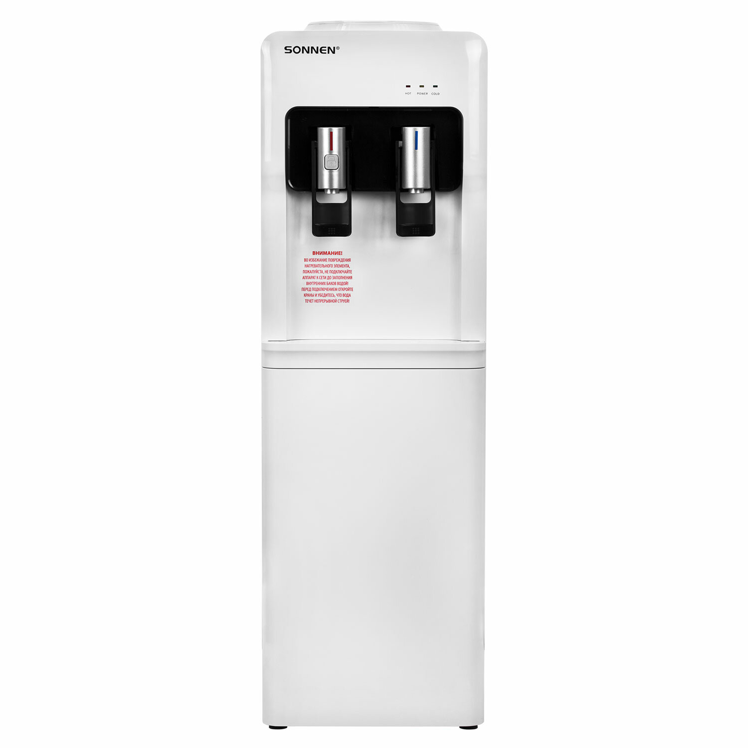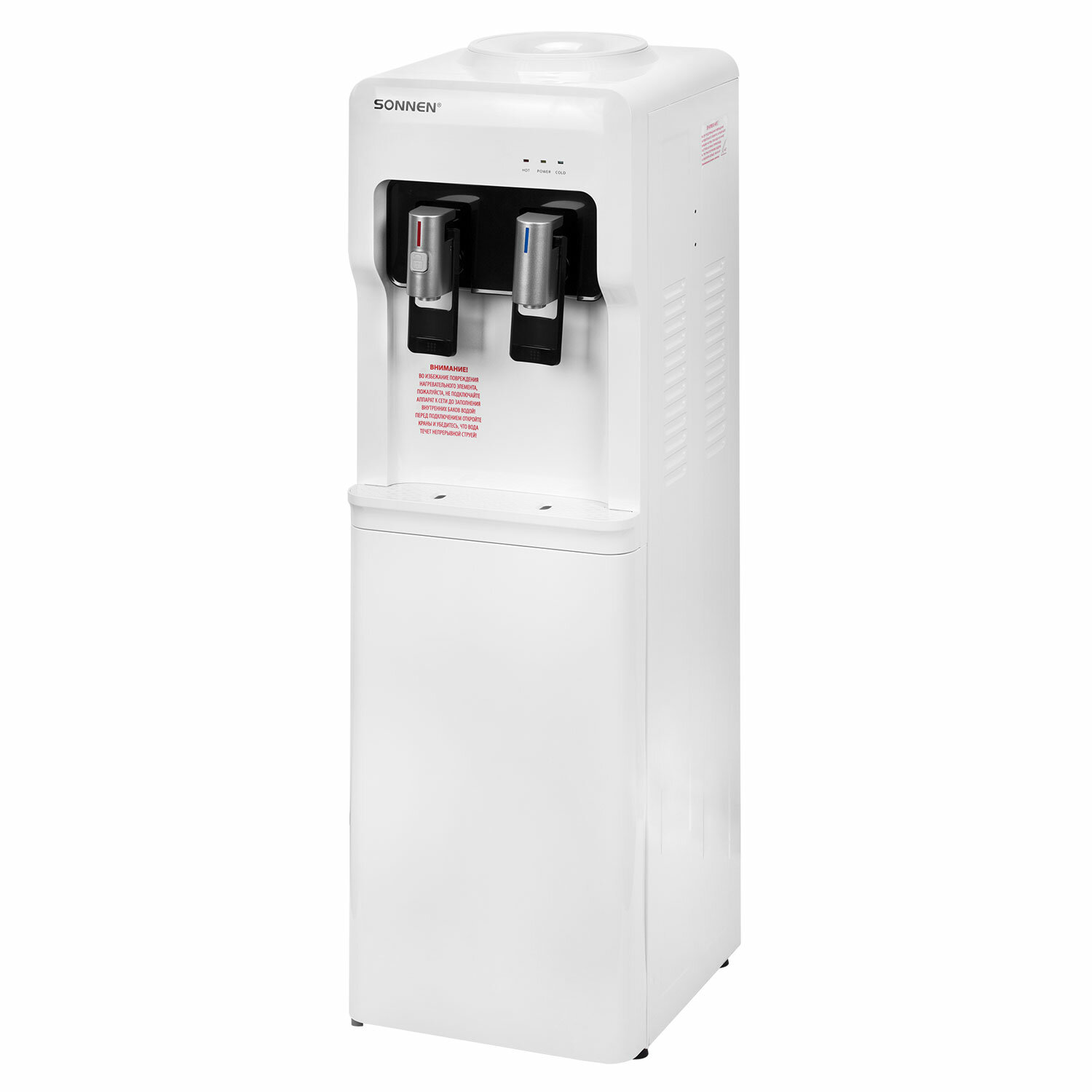 Кулер для воды SONNEN FSE-02A, напольный, НАГРЕВ/ОХЛАЖДЕНИЕ ЭЛЕКТРОННОЕ, 2 крана, белый, 455421
