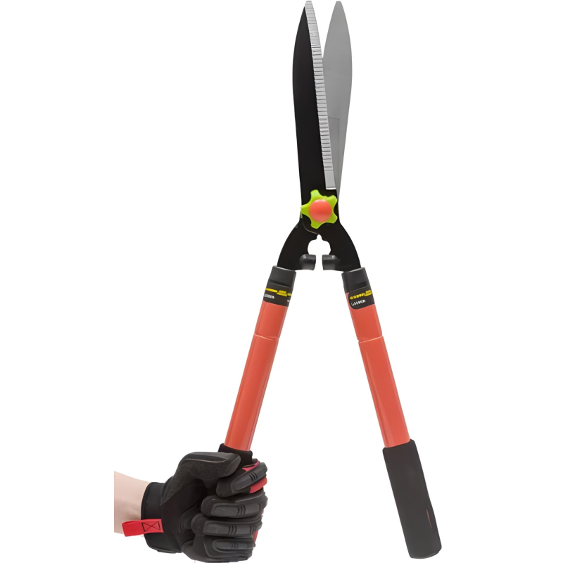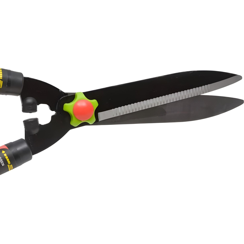 Инструмент представляет собой большие садовые ножницы с остро заточенными лезвиями. Имеет телескопическую рукоятку. Применяется для быстрой обрезки веток и листвы, подравнивания кустарников. Длина: 570–750 мм.