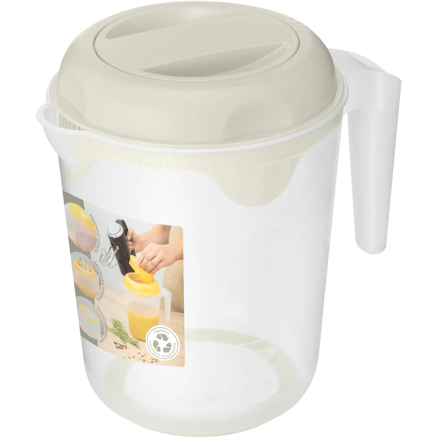 Кувшин для блендера (миксера) удобно использовать для взбивания сливок, приготовления теста, блюд из творога, супов-пюре, ягодных и фруктовых десертов, различных соусов и детского питания. Благодаря особой форме крышки, продукты при взбивании не разбрызгиваются. Специальное покрытие из эластомера на дне кувшина предотвратит скольжение по столу. Мерная шкала на корпусе позволит отмерить нужное количество воды.
