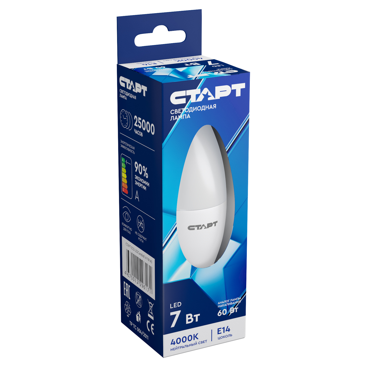 О товаре «Лампа светодиодная Старт Eco C 7Вт E14 4200К 560Лм 240В LEDCandleE14 7W42»