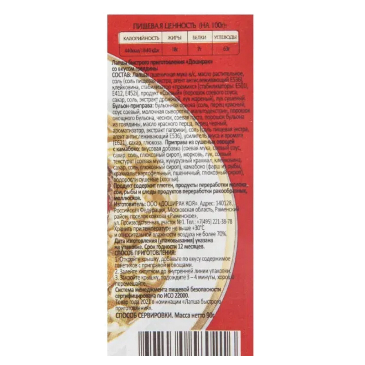 О товаре «Лапша ДОШИРАК со вкусом говядины 90 г, 10853»
