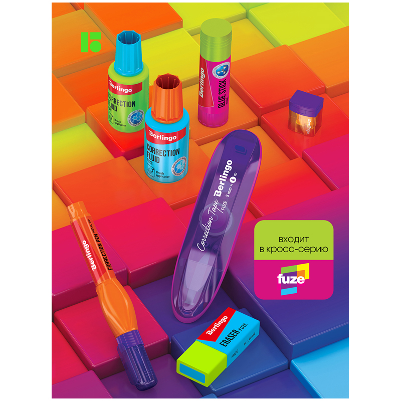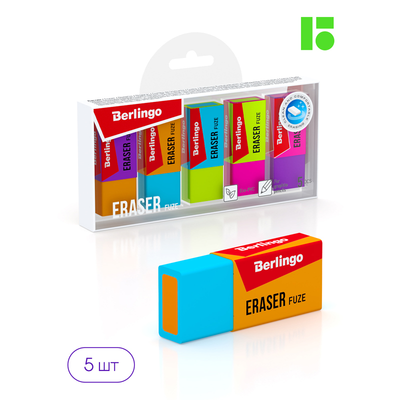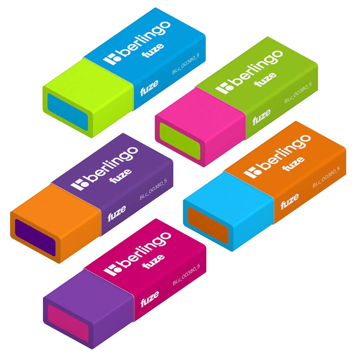 Ластик Berlingo "Fuze", 5шт., прямоугольные, 50*20*11мм, пластиковая коробка