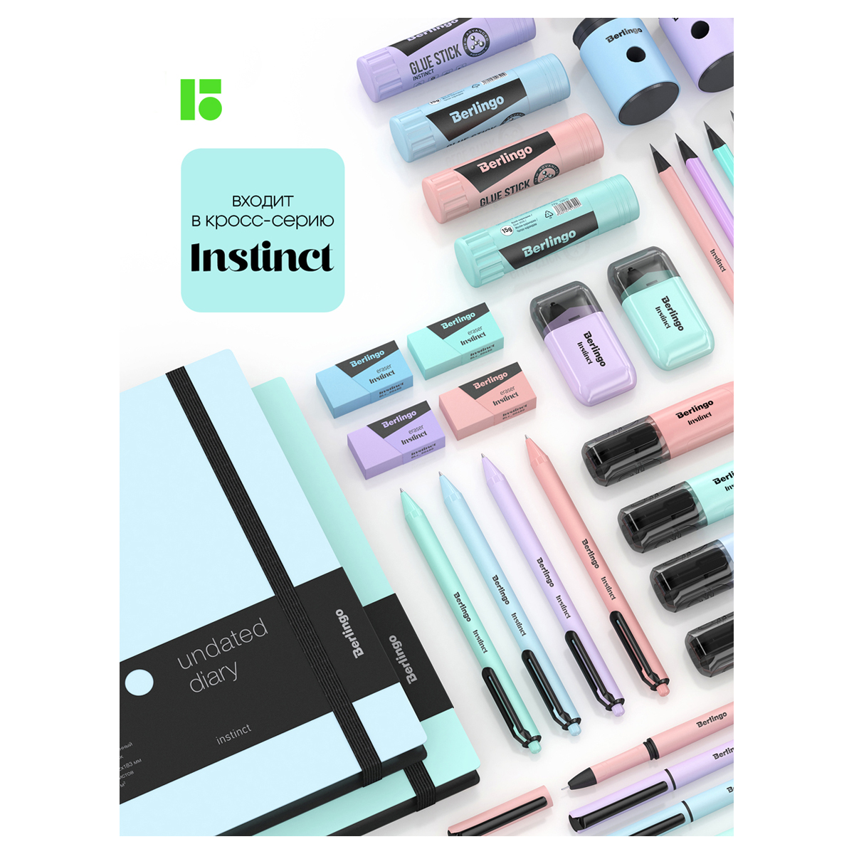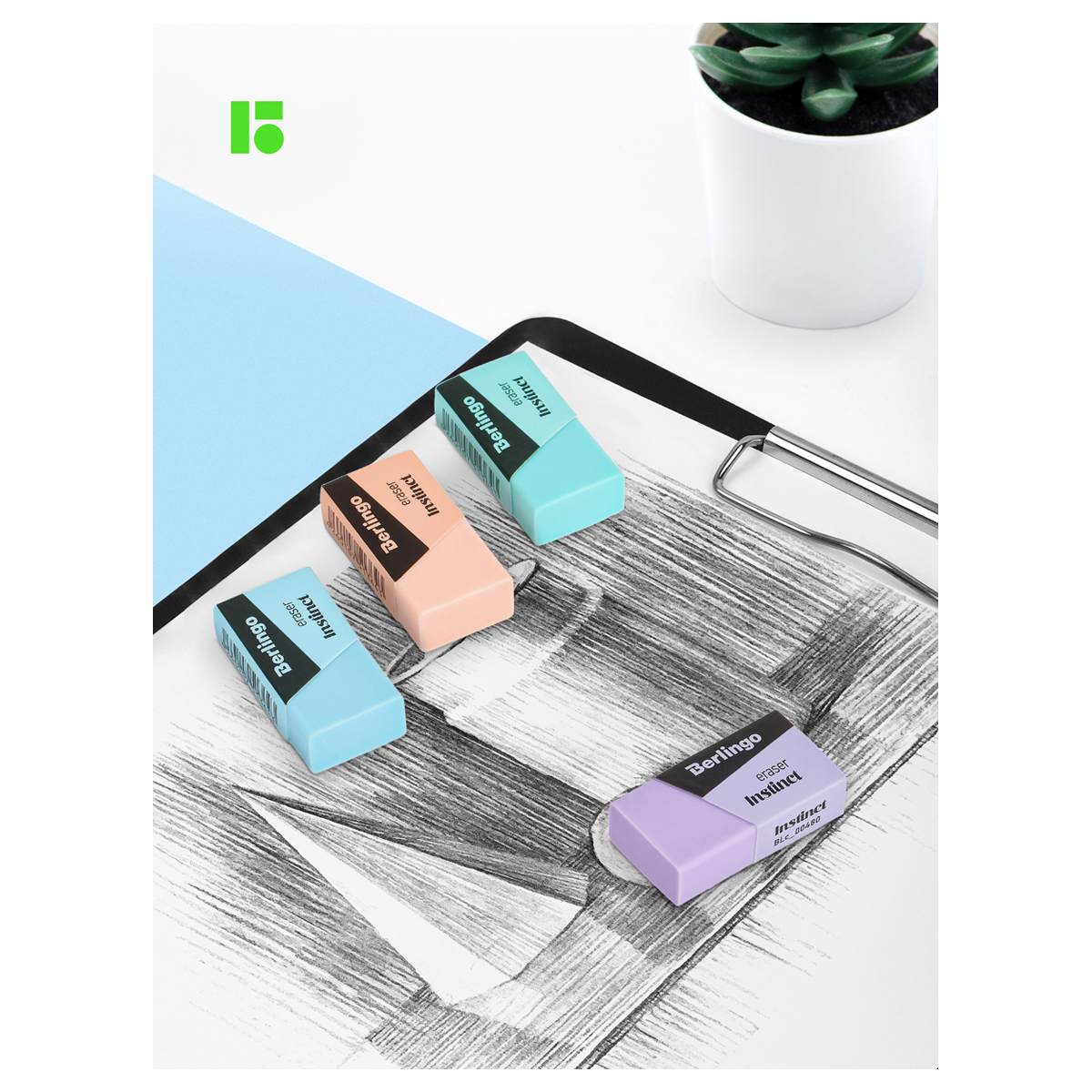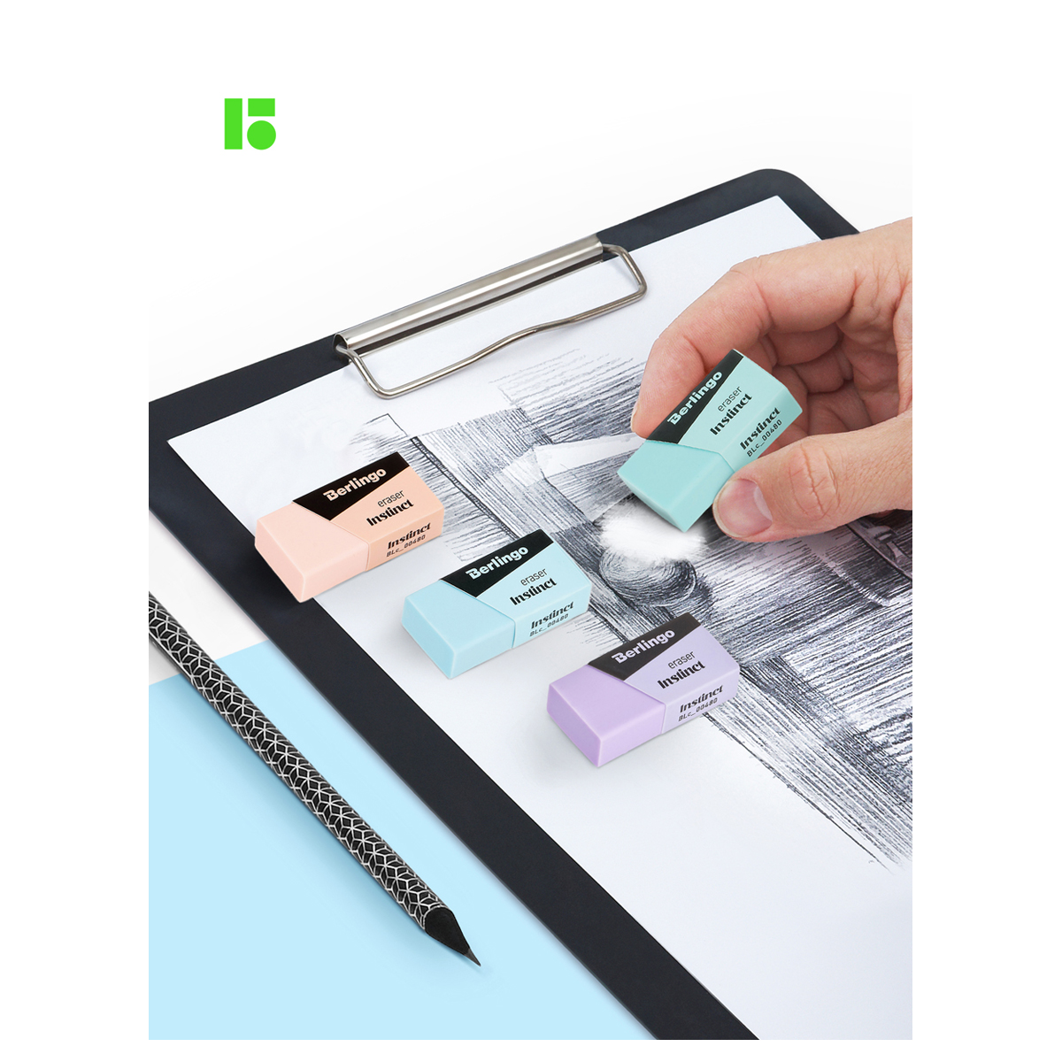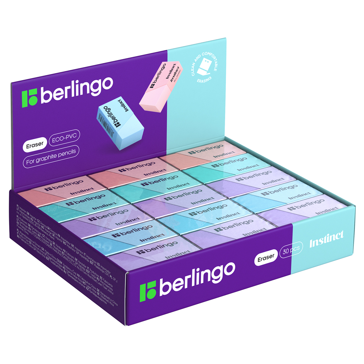 Ластик выполнен в стиле коллекции Berlingo "Instinct". Пастельные цвета в сочетании с черным: розовый, лаванда, мятный, аквамарин. Ластики выполнены из Eco-Pvc. Не токсичны, не содержат вредных компонентов и фталатов. Прекрасно справляются с линиями от чернографитного карандаша,