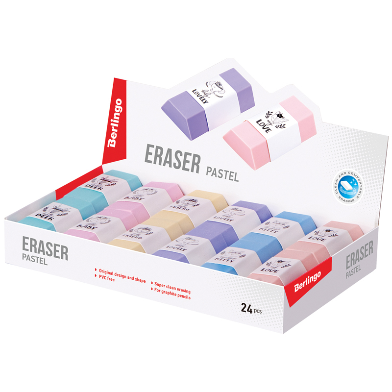 О товаре «Ластик Berlingo "Pastel", термопластичная резина, цвета ассорти, 50*28*12мм»