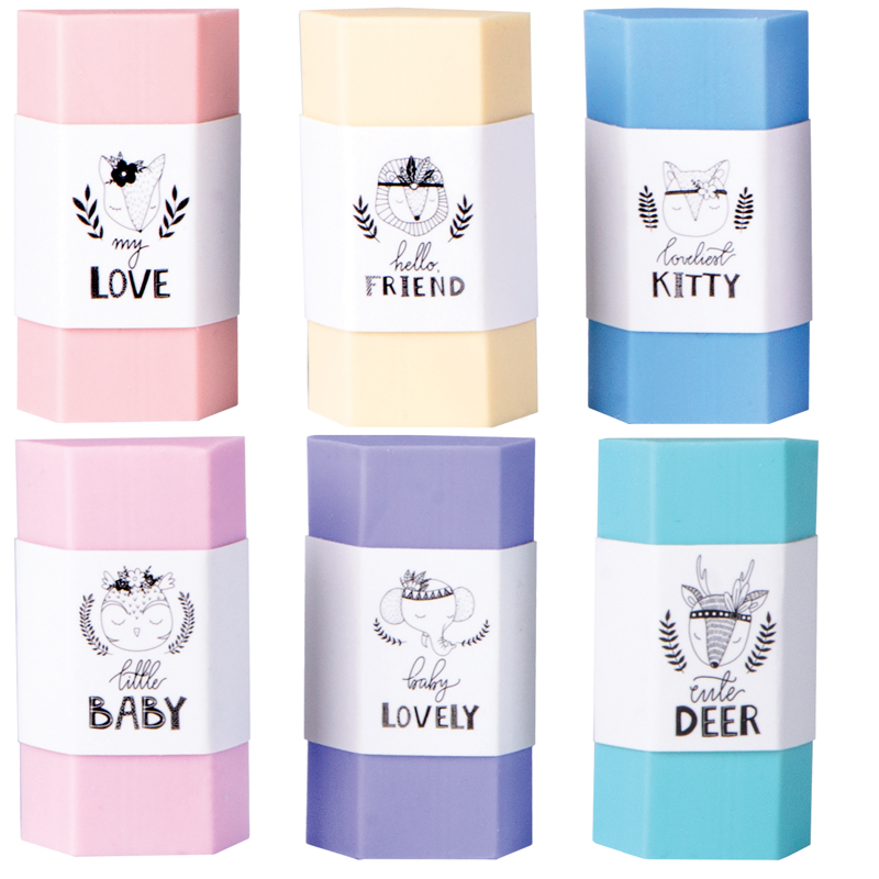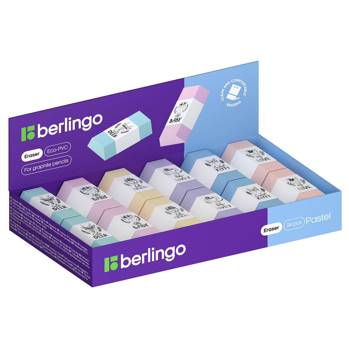 Ластик выполнен из мягкой термопластичной резины. Каждый ластик имеет штрихкод. Упаковка в дисплей. 6 цветов ассорти.