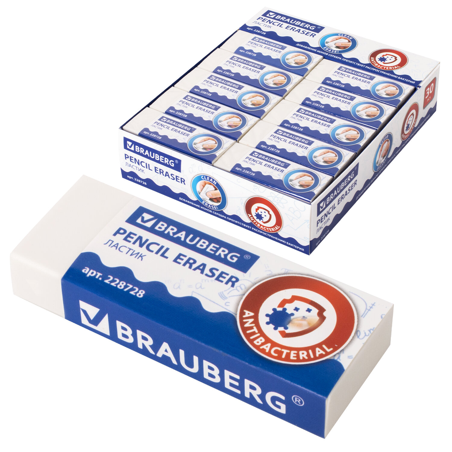 О товаре «Ластик BRAUBERG "АНТИБАКТЕРИАЛЬНЫЙ", 58х22х12 мм, белый, прямоугольный, картонный держатель, 228728»