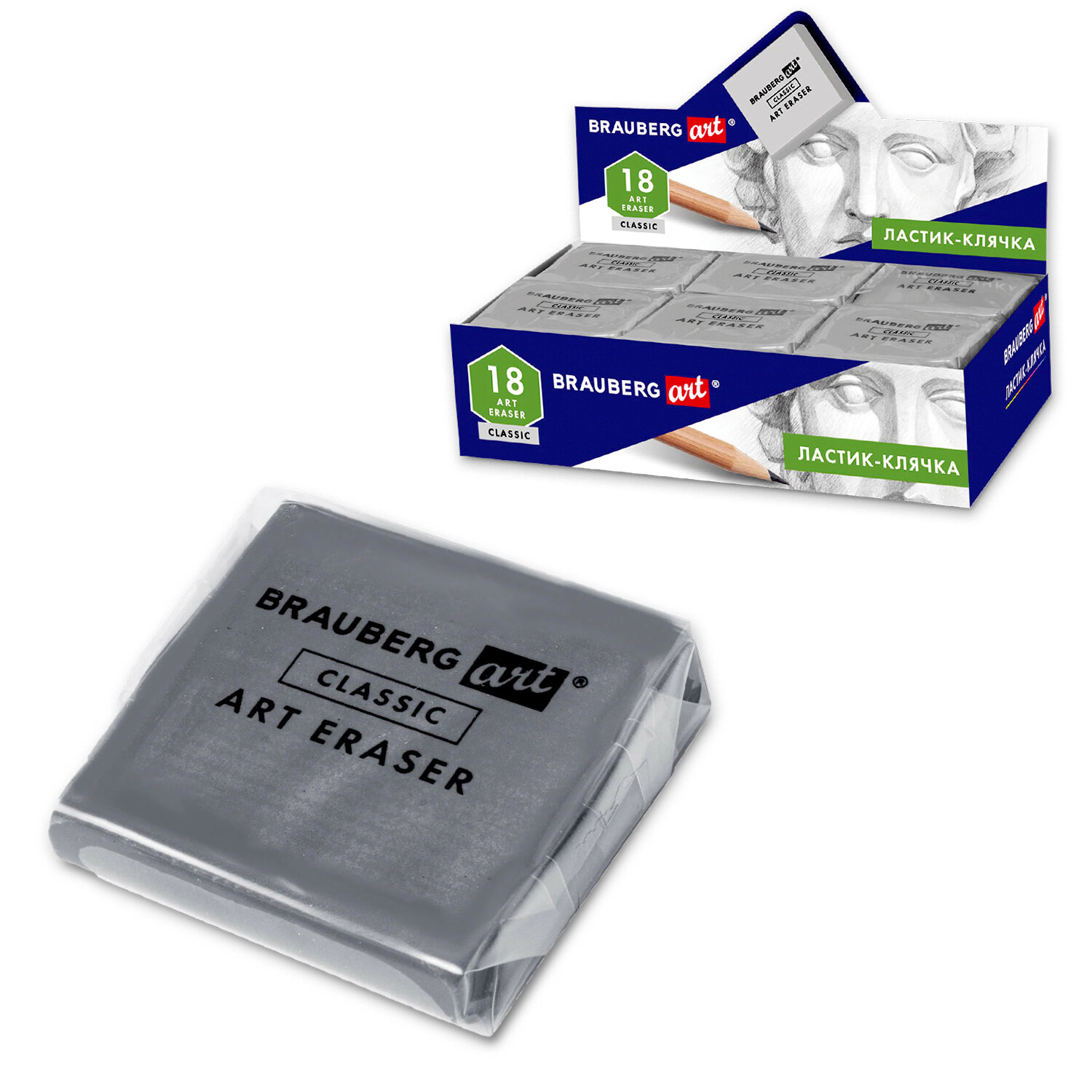 Ластик-клячка художественный BRAUBERG ART "CLASSIC" 40х36х10 мм, супермягкий, серый, 228064