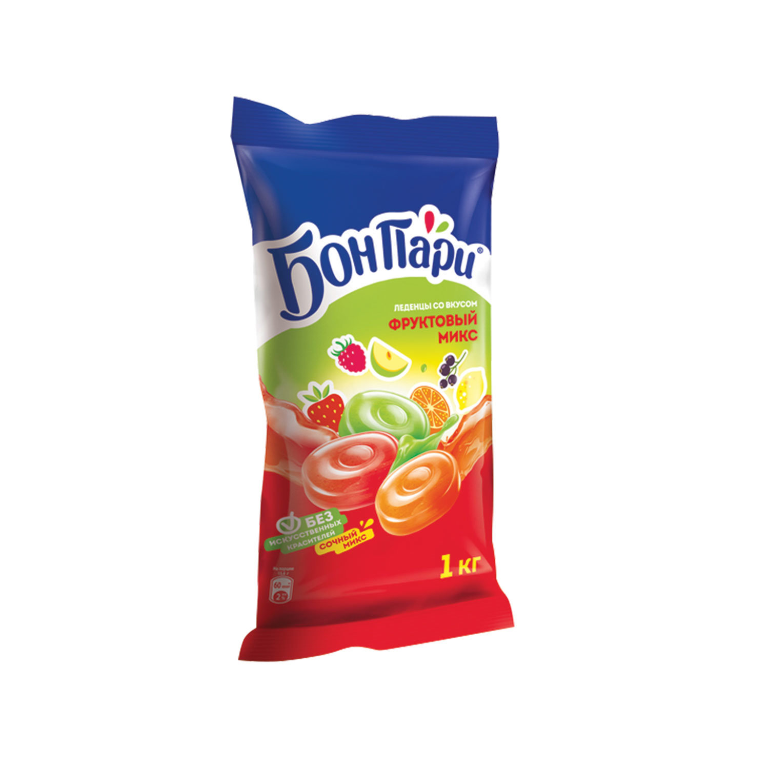 Леденцы Nestle «Бон Пари Фруктовый микс» 1 кг — это яркие разноцветные леденцы с сочным вкусом фруктов и ягод. Округлые карамельки со вкусом яблока, малины, клубники, лимона, а также вишни и черной смородины содержат в себе натуральный сок, который делает их невероятно привлекательными для всех поклонников сладких лакомств. Изумительные фруктово-ягодные леденцы станут отличным спутником детей и взрослых, которым предстоит дальняя дорога. Они скрасят скуку, поднимут настроение и помогут справиться с легкими симптомами укачивания. Эффектные конфетки «Бон Пари Фруктовый микс» идеальны в качестве угощения клиентов салонов, банков, различных предприятий и офисов. Стеклянная вазочка, наполненная вкусными леденцами, станет проявлением вашего внимания и заботы о гостях и приятным бонусом, который подчеркнет клиентоориентированность и уют вашей компании. Возьмите с собой «Фруктовый микс» в гости, на работу, в путешествия или на прогулки, делитесь разноцветным лакомством с друзьями и близкими, заряжайтесь позитивной энергией, счастливыми улыбками и прекрасным ароматом любимых фруктов и ягод. Состав: сахар, патока, комплексный пищевой компонент (регуляторы кислотности (кислота молочная, кислота лимонная, цитраты калия, лактат калия), ароматизаторы натуральные (яблоко, малина, черная смородина, клубника, с маслом лимона, апельсин), концентрированный яблочный сок (0,35%), натуральные красители (антоцианы (получены из моркови), экстракт паприки, медные комплексы хлорофиллинов (получены из шелковицы), куркумин), комплексный пищевой компонент (глюкозный сироп, носитель (глицерин), натуральный краситель (уголь растительный). Без искусственных красителей. Продукт может содержать диоксид серы. Вес: 1000 г. Тип упаковки: флоу-пак. Страна производства: Россия. Срок хранения: 18 месяцев. СТО 96436727-012.