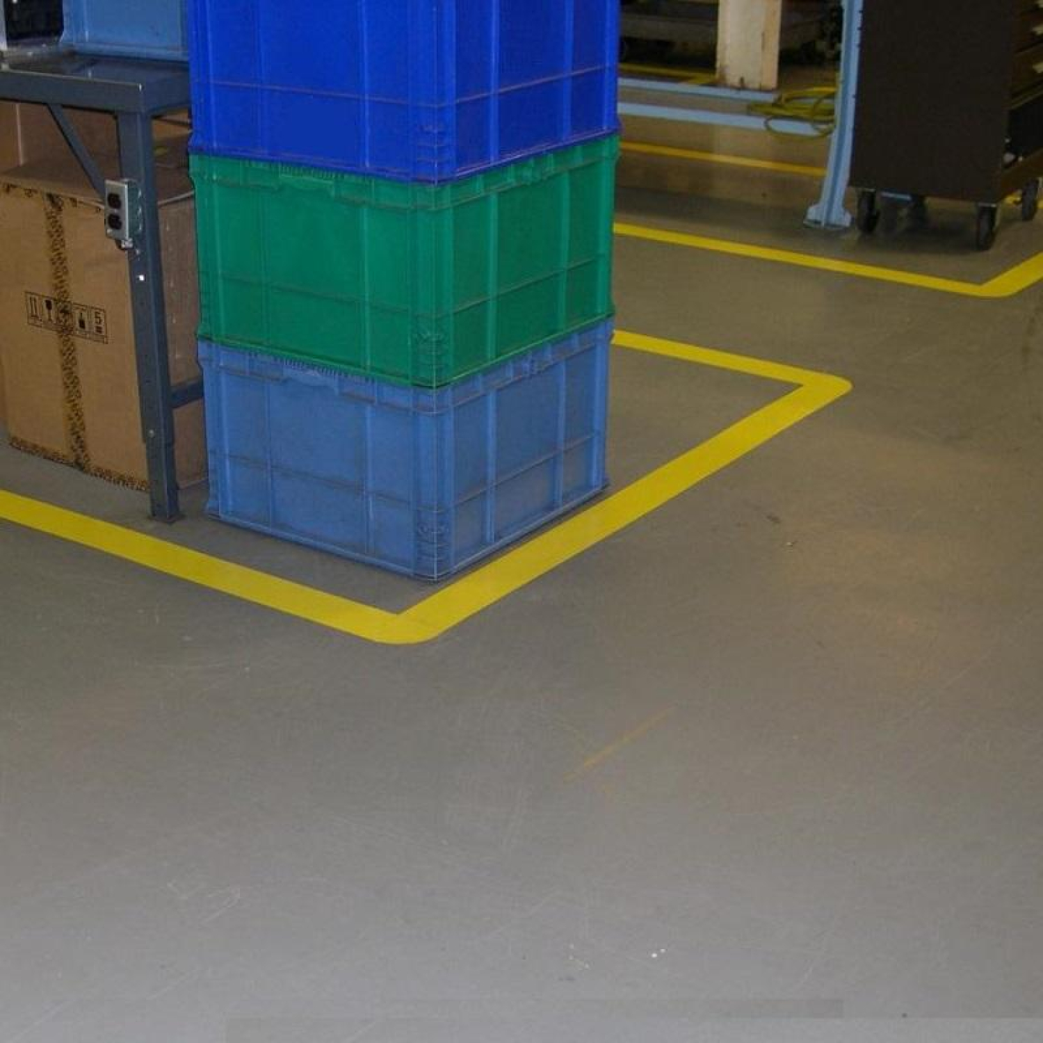 Лента для разметки жёлтого цвета на основе ПВХ. Клеевой слой на основе каучука. Ширина ленты — 75 мм, длина намотки 33 погонных метров. Служит для нанесения разметки, обеспечения безопасности, указания направления движения, места остановки, ограничения движения, а также для обозначения подъездных путей. Хорошо приклеивается, устойчива к сколам, порезам, разрывам, обладает гладкой поверхностью. Толщина носителя: 0.1-0.11 мм. Общая толщина: 0.13-0.14 мм. Удлинение при разрыве: 140-170%. Рабочий диапазон температур: от −5 до 70 градусов Цельсия.
