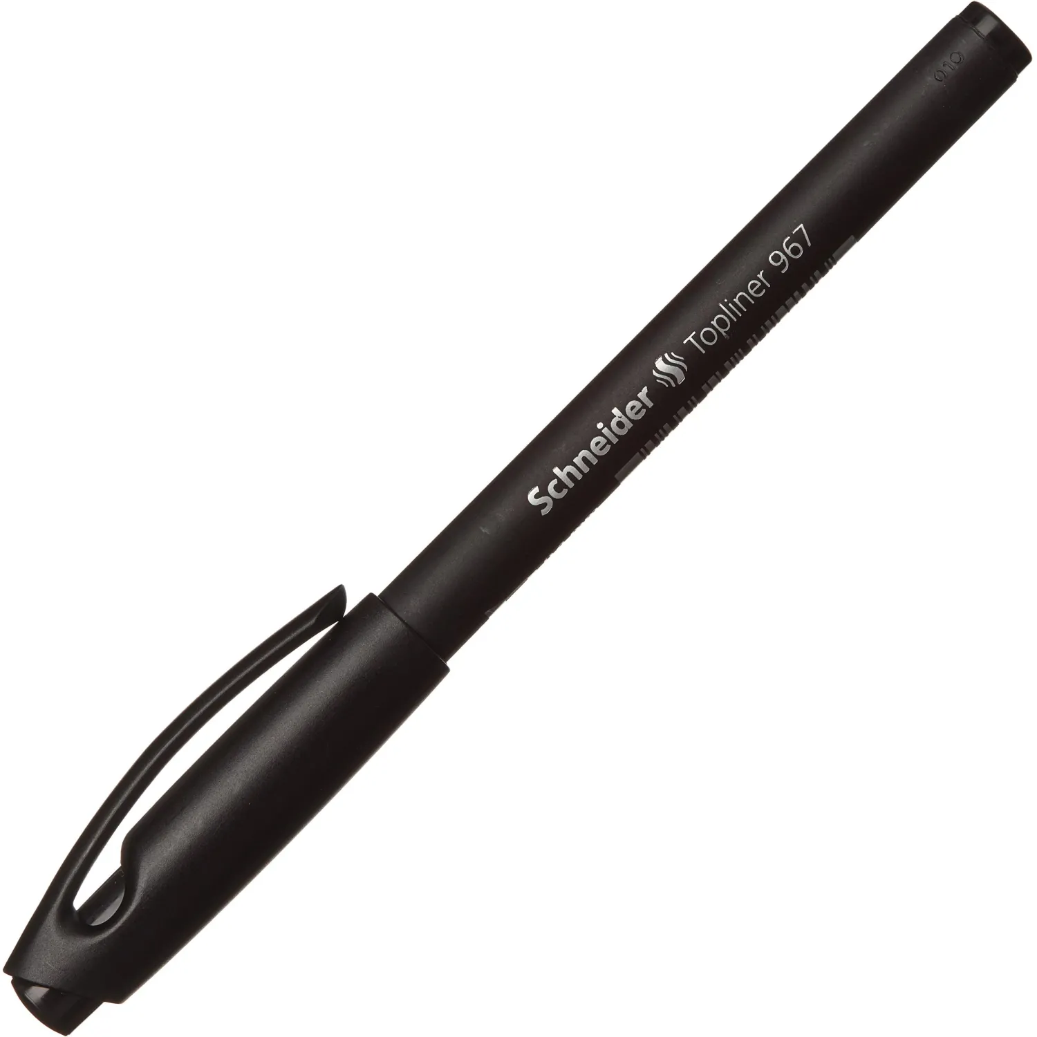Капиллярная ручка Schneider Topliner 967 в стильном дизайне. Диаметр пишущего узла ручки составляет 0,4 мм, толщина линии письма – 0,4 мм. Длина письма может достигать 1500 м. В упаковке 10 чёрных ручек. Капиллярная ручка предназначена для письма, рисования, раскрашивания и черчения. Круглый пластиковый чёрный корпус.Цвет колпачка соответствует цвету чернил. Письменные принадлежности Schneider разрабатываются и производятся только в Германии.