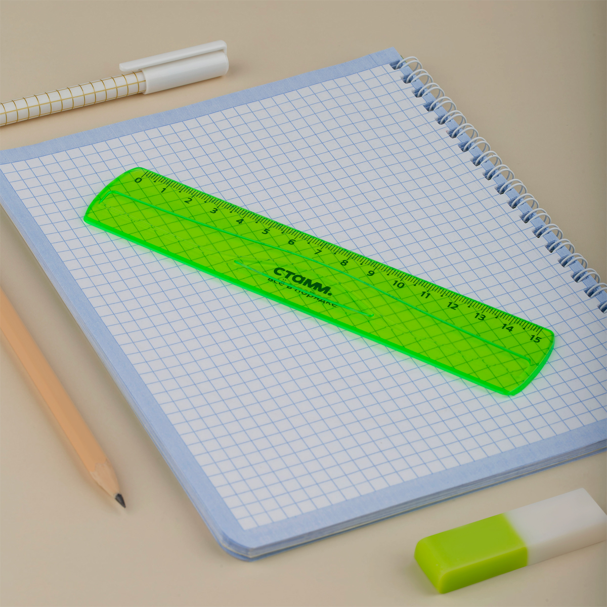 О товаре «Линейка 15см СТАММ, пластиковая, гибкая, прозрачная, зеленая, европодвес»