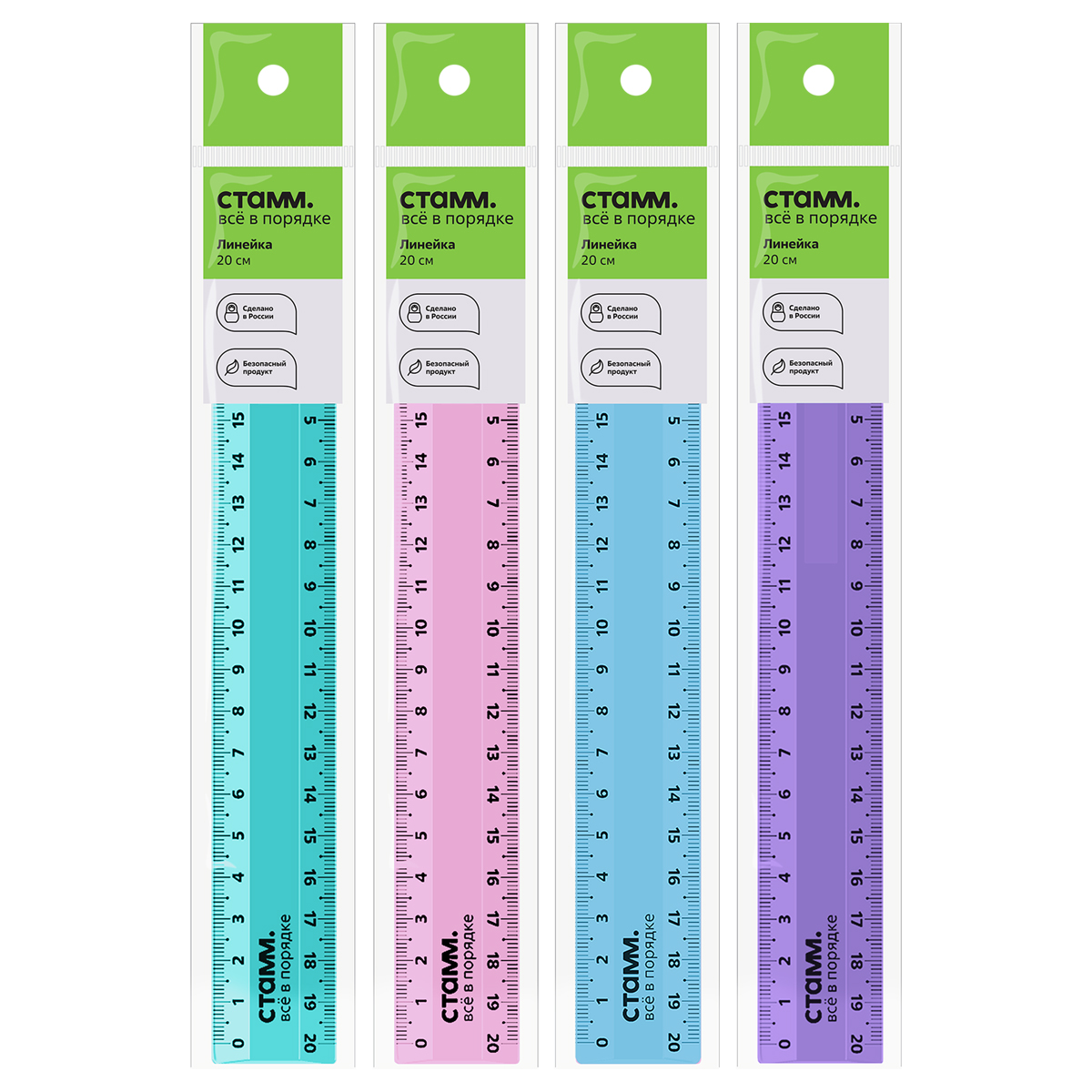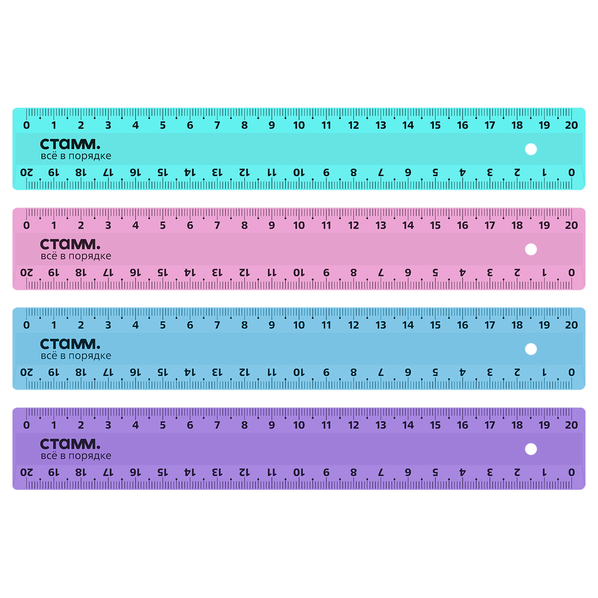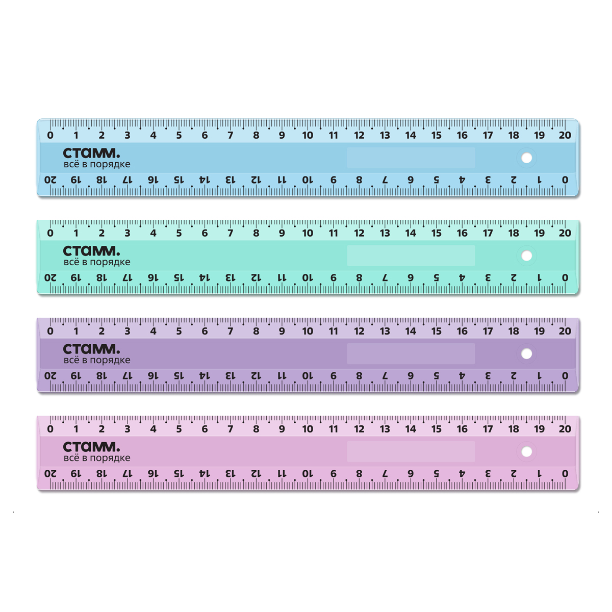 О товаре «Линейка 20см СТАММ, пластиковая, 2 шкалы, непрозрачная, пастельные цвета, ассорти, европодвес»