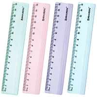 Линейка пластиковая 15 см BRAUBERG "PASTEL", тонированная, ассорти, 117012