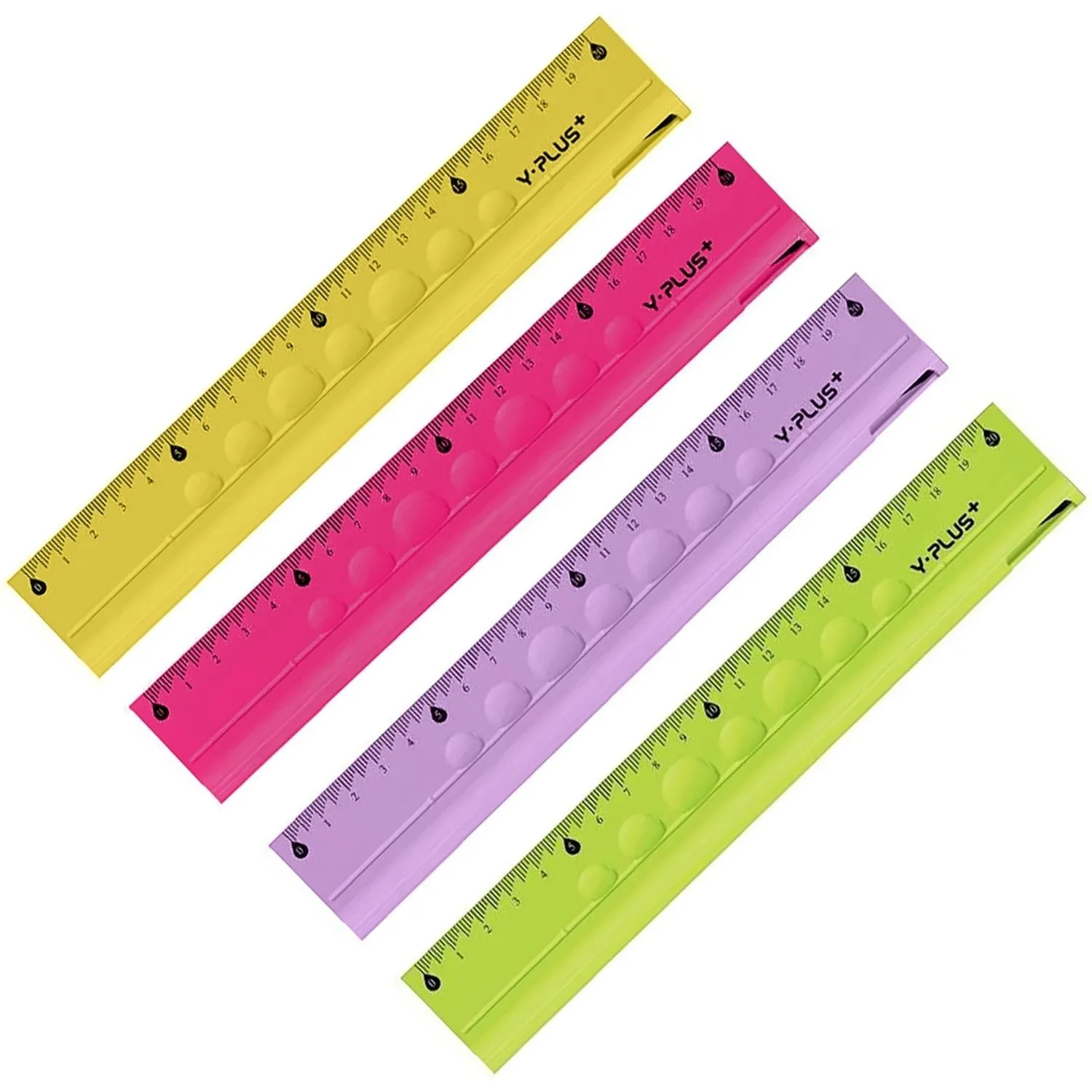 Линейка Y-plus 4в1 20 см пластиковая в ассортименте прозрачная