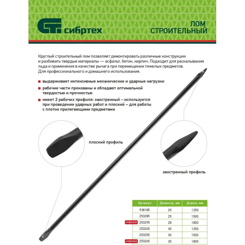О товаре «Лом строительный СИБРТЕХ, D 30 мм, L 1250 мм, круглый 253245»