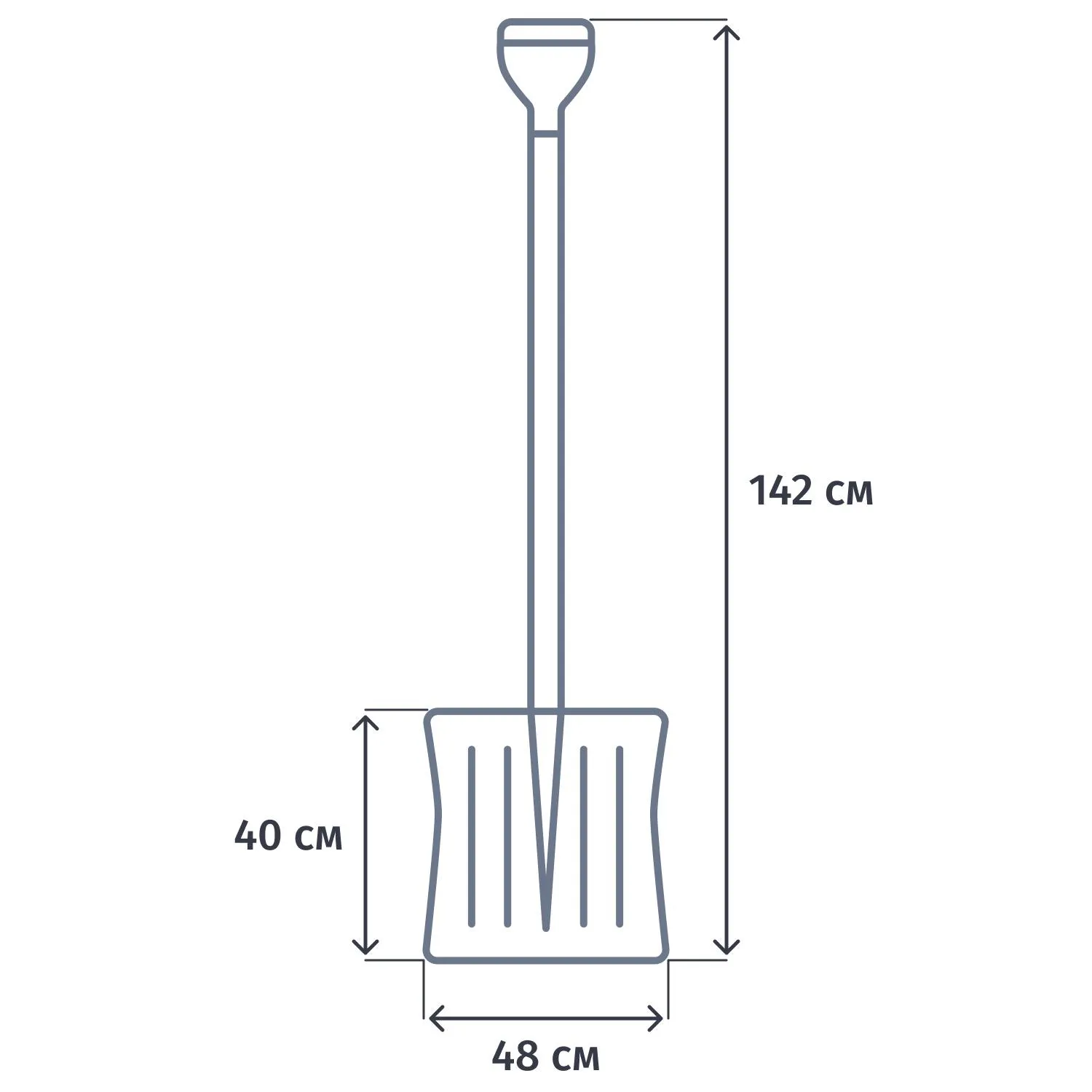 Лопата для уборки снега Эталон Original пластик (поликарбонат) 48×40 см с черенком 110 см (с ручкой на черенке, с рёбрами жёсткости)