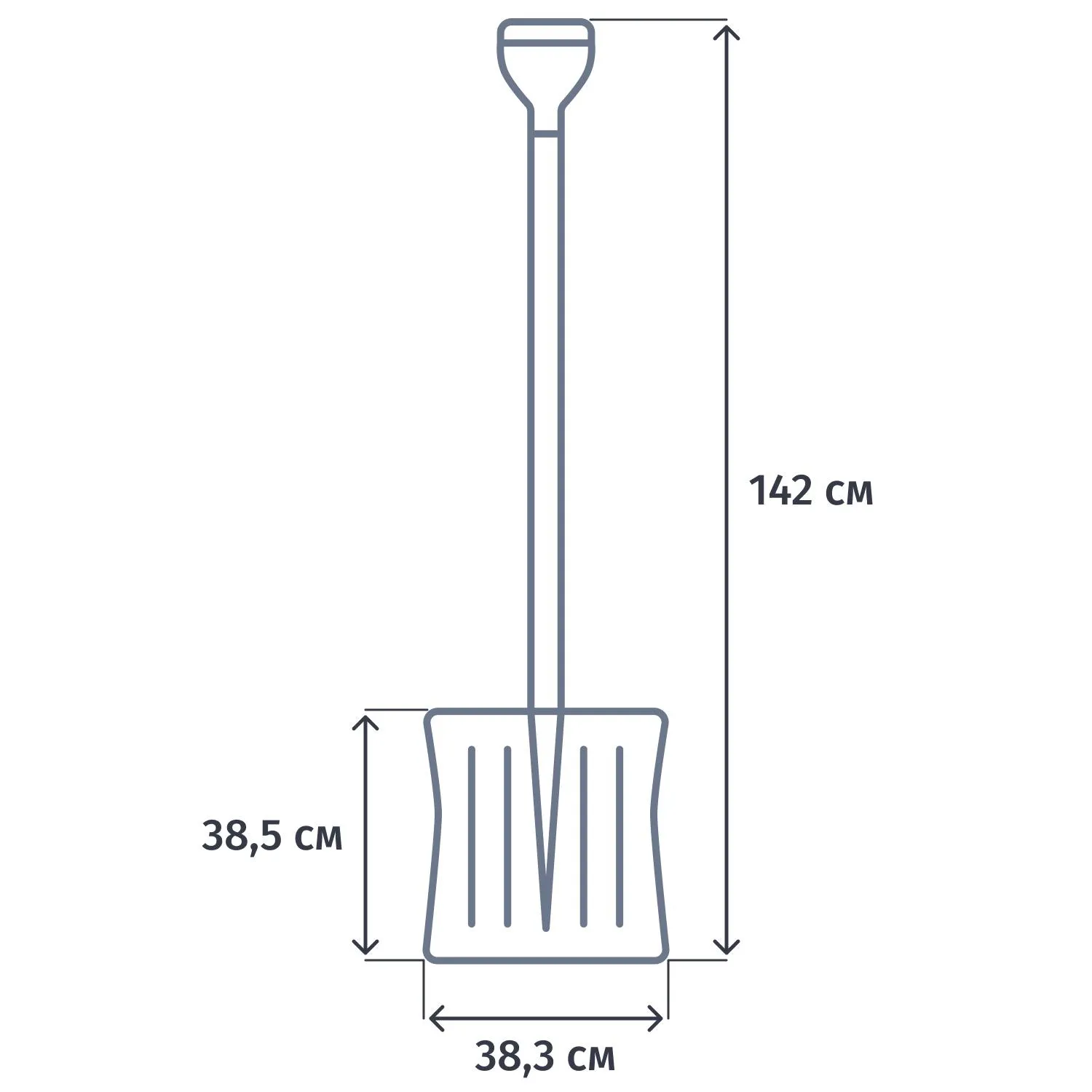 Пластиковая лопата размером 38.3×38.5×142 см, с деревянным черенком, позволяет облегчить уборку снега. С её помощью можно очистить дорожки в загородном доме, выезд из гаража и т.д.
