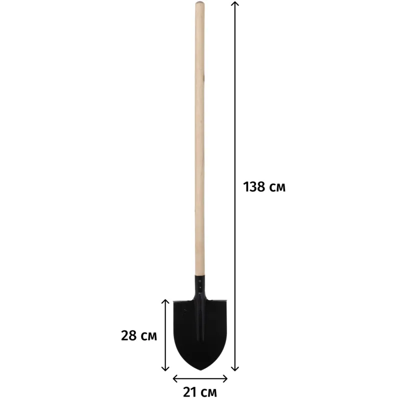 Предназначена для копки и земляных работ на приусадебном участке, в саду или на стройке. Штыковая форма и остроконечная рабочая часть позволяют легко проникать в плотную почву. Стальное полотно толщиной 1.4 мм устойчиво к износу и деформации. Классическая конструкция дополнена деревянным черенком длиной 100 см. Общая длина изделия составляет 138 см. Длина рабочей части — 28 см, ширина — 21 см. Диаметр тулейки — 37 мм. Вес изделия — 0.74 кг.