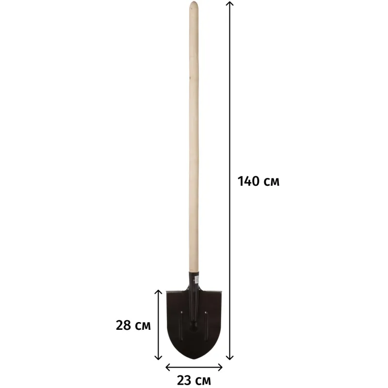 Предназначена для выполнения земляных работ, включая копку, планировку и пересадку растений. Штыковая форма облегчает врезание в плотную почву, а стальная рабочая часть толщиной 1.5 мм обеспечивает надёжность и устойчивость к износу. Классическая конструкция дополнена деревянным черенком. Общая длина изделия составляет 140 см. Длина рабочей части — 28 см, ширина — 23 см. Диаметр тулейки — 40 мм. Вес изделия — 1.65 кг.