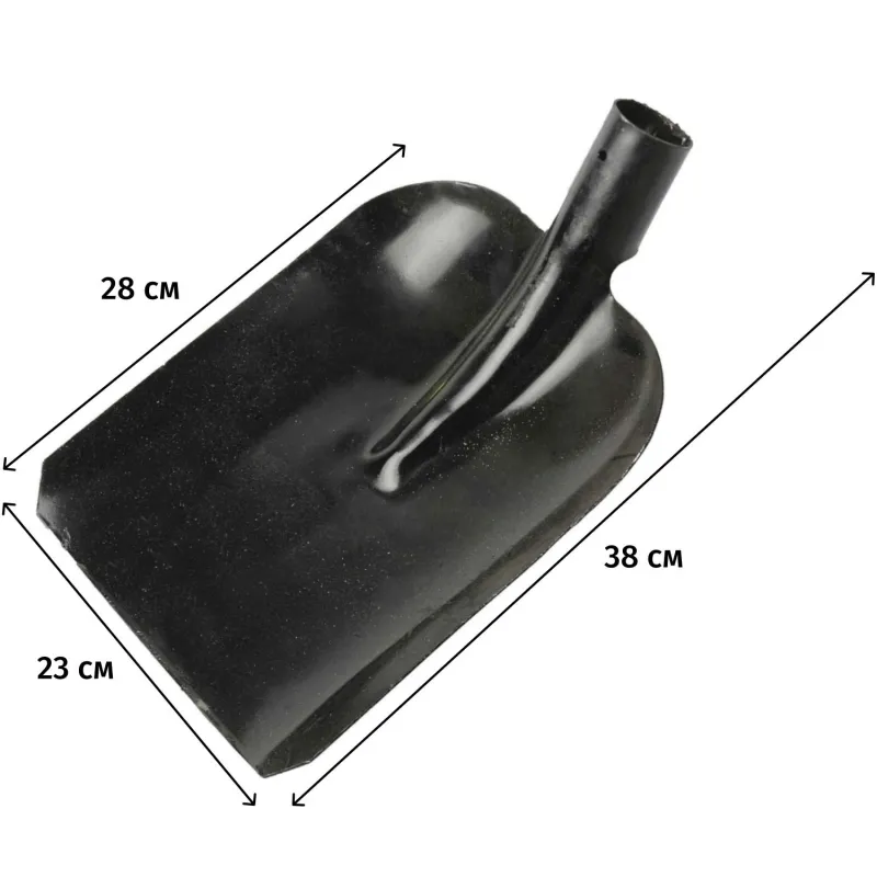 Предназначена для выполнения хозяйственных и строительных работ, связанных с перемещением мусора, снега и сыпучих материалов. Совковая форма позволяет эффективно набирать и переносить объёмные массы, а классическая конструкция обеспечивает удобство использования. Рабочая часть изготовлена из стали толщиной 1.2 мм. Общая длина изделия — 38 см. Длина рабочей части составляет 28 см, ширина — 23 см. Диаметр тулейки — 40 мм. Вес изделия — 0.7 кг.