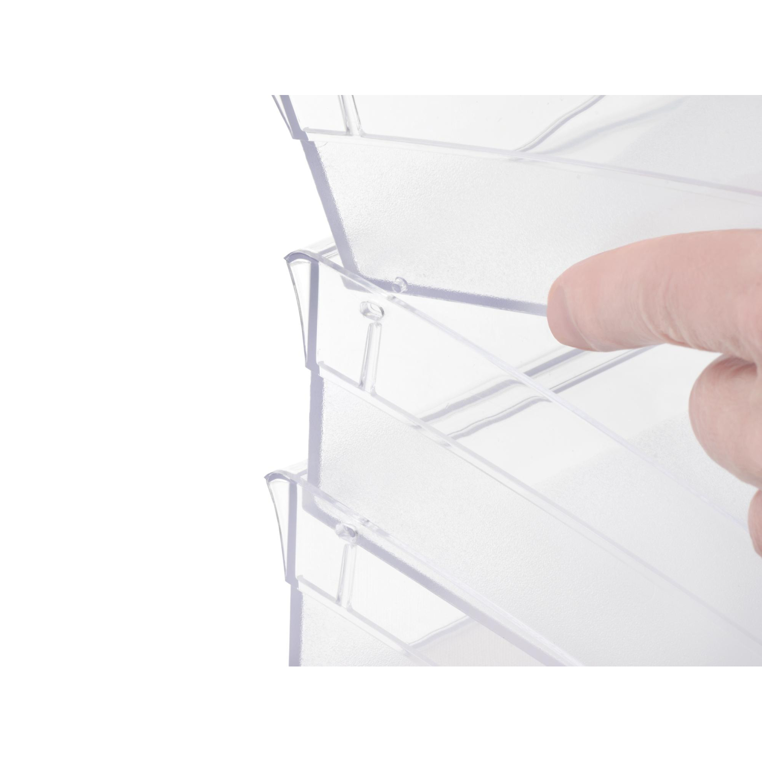 Горизонтальный лоток для бумаг Attache City предназначен для хранения документов и печатной продукции формата А4. C коллекцией City вы сможете оформить рабочее пространство в едином стиле. Изготовлен из пластика толщиной 2 мм. Цвет: бесцветный. Размеры (ВхГхШ): 65×335×233 мм. Вес: 0.246 кг. Возможно размещение лотков друг на друга. В комплекте нет этикетки для маркировки.