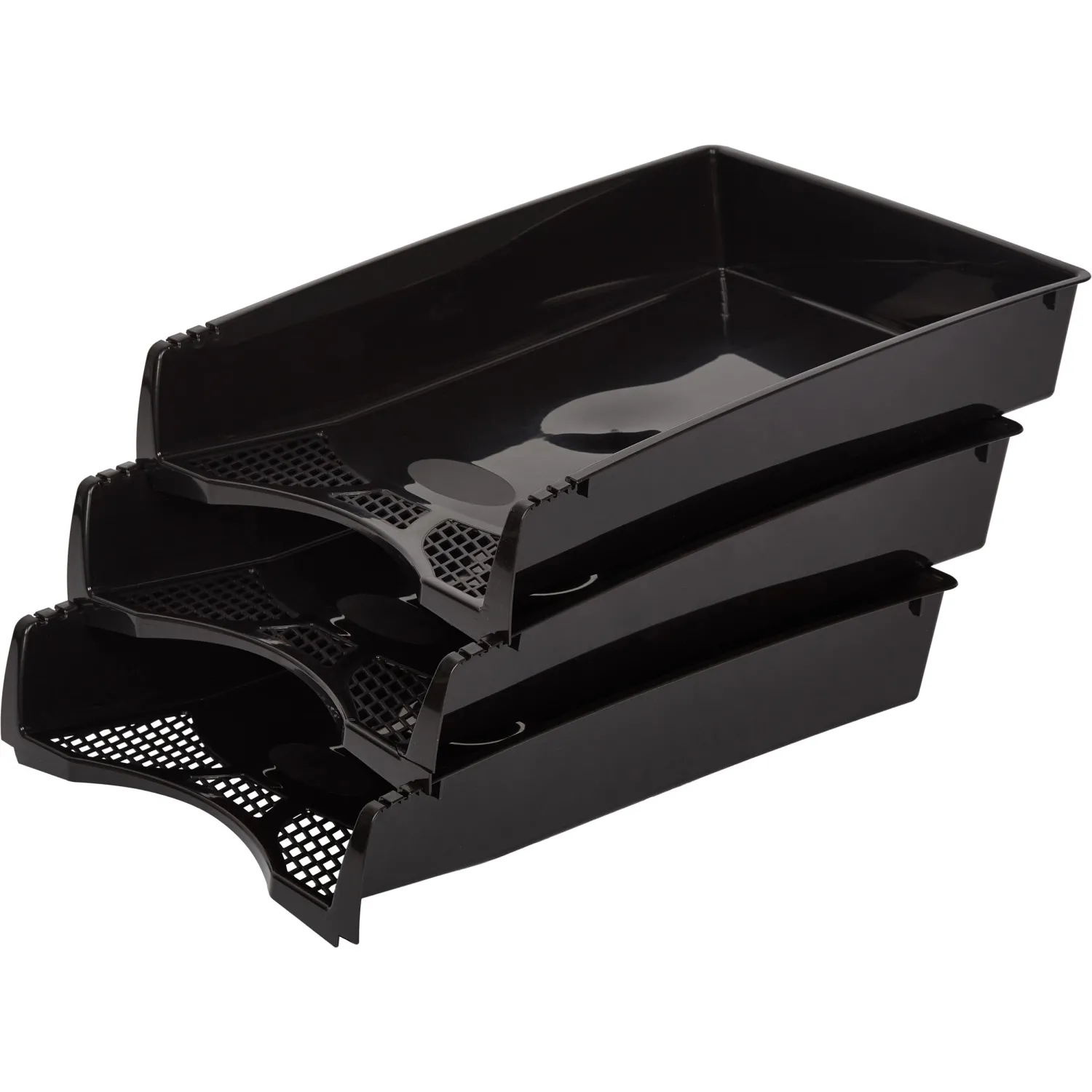 Лоток горизонтальный для бумаг Attache пластиковый черный (3 штуки в упаковке)
