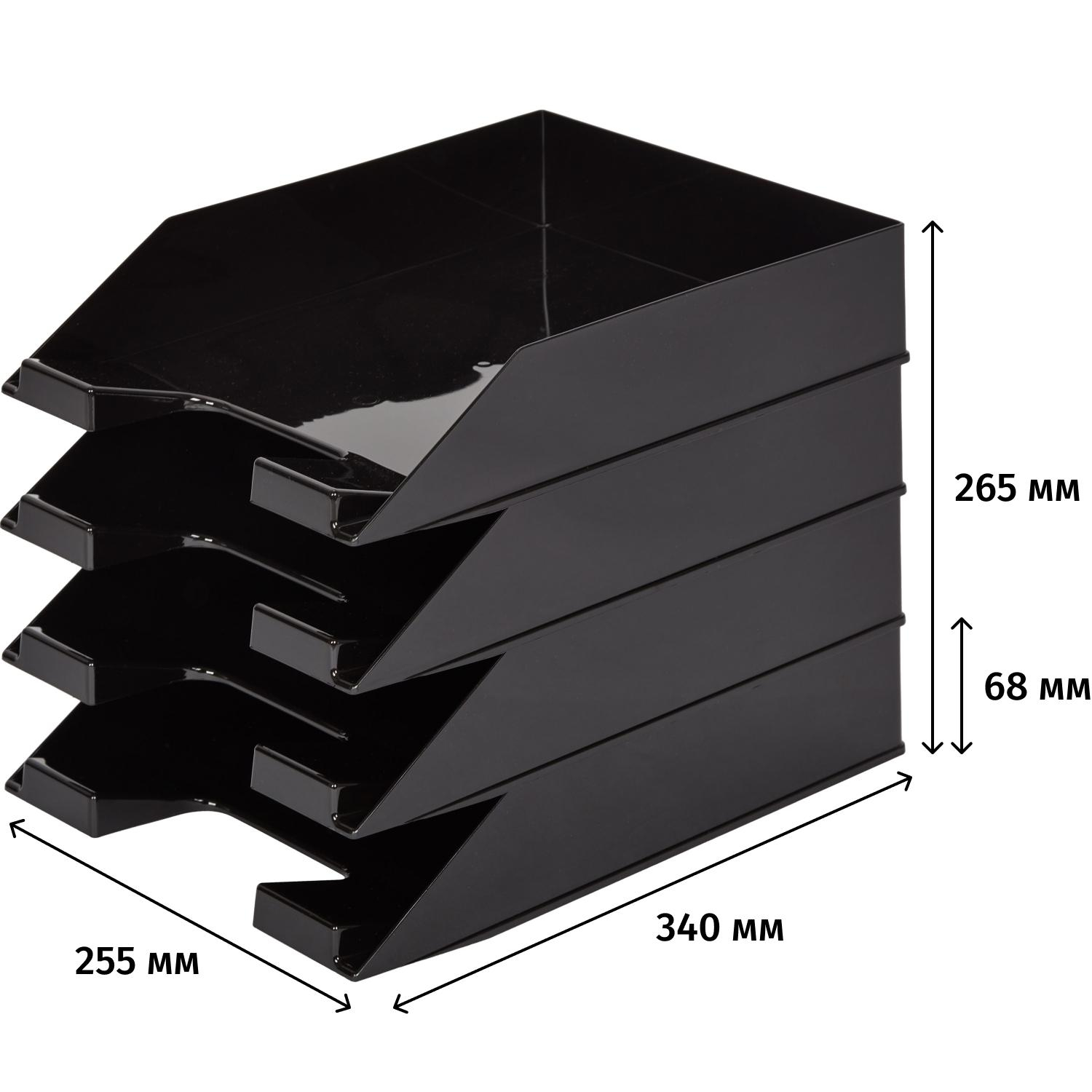Лоток горизонтальный для бумаг Attache пластиковый черный 4 отделения (4 штуки в упаковке)