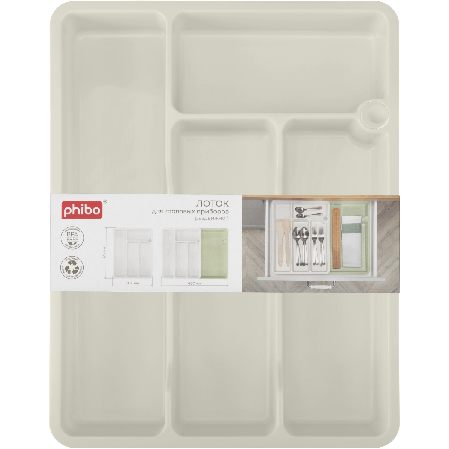 Лоток для столовых приборов Phibo пластиковый 37.3×28.7 см светло-серый