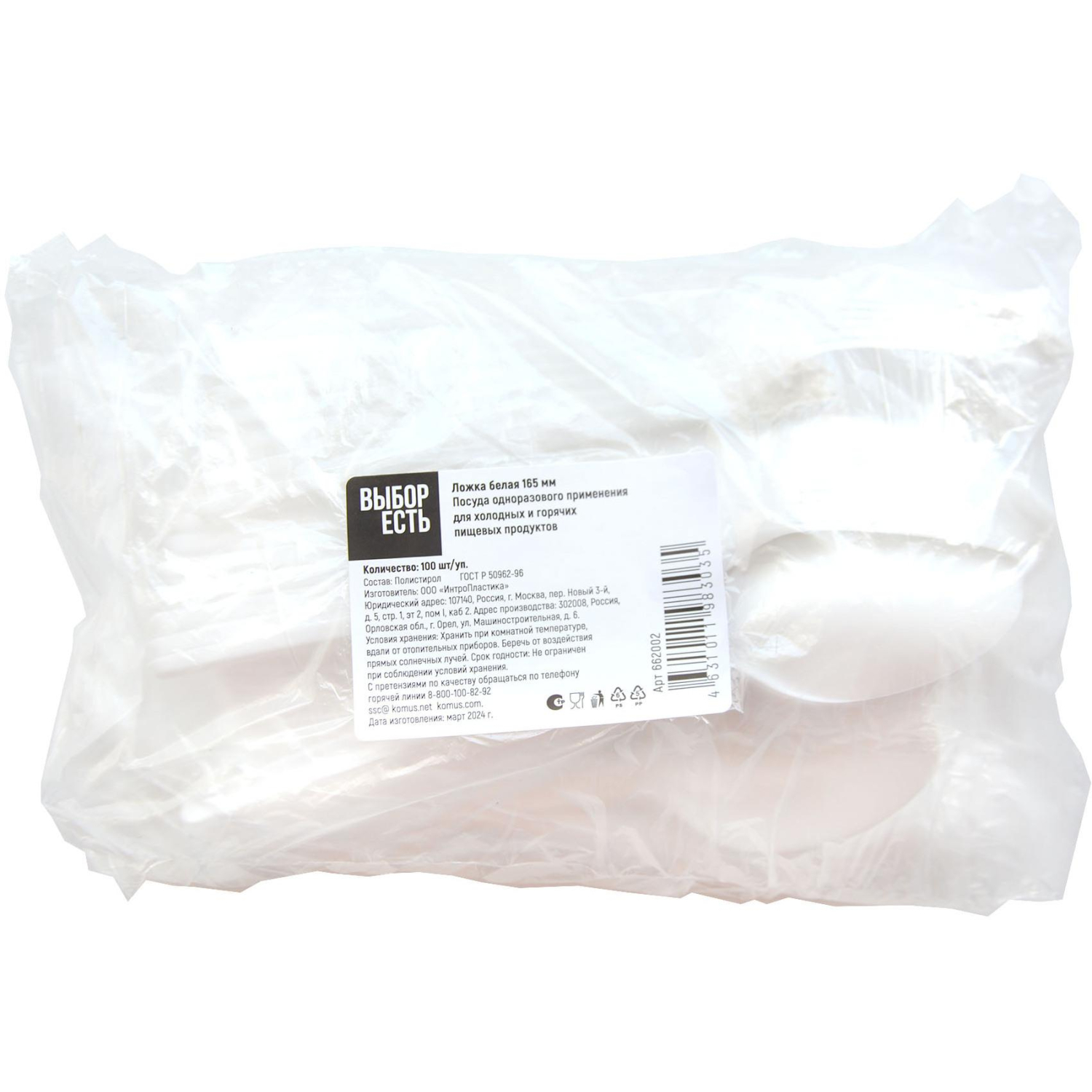 Ложка одноразовая столовая пластиковая Выбор есть белая 165 мм (100 штук в упаковке).